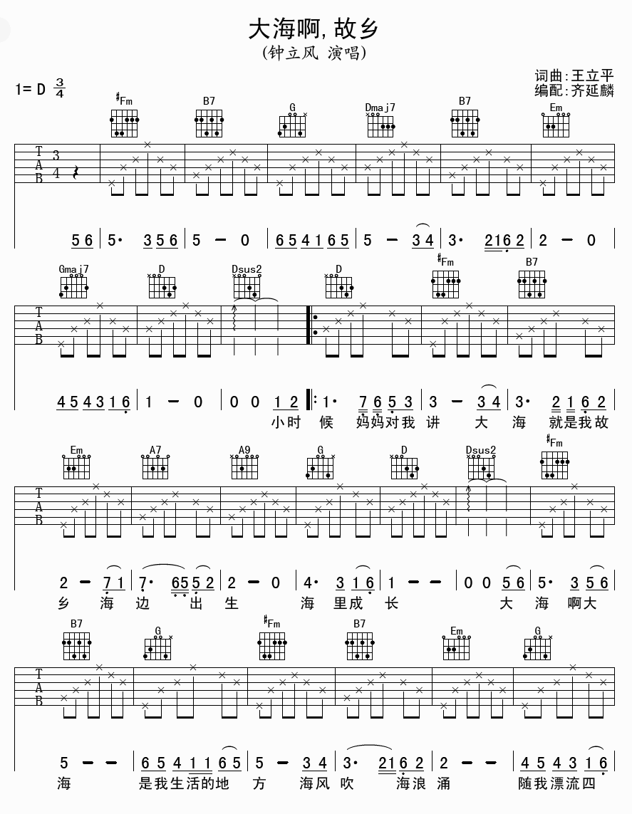 《钟立风《大海啊故乡吉他谱》(F调)》内容来自于互联网,不能保证内容的准确性与完整性,仅供学习交流欣赏,请勿用于其它用途,内容版权归原作者及来源网站所有,如有侵犯到您的权益请来信告知,我们将及时删除。