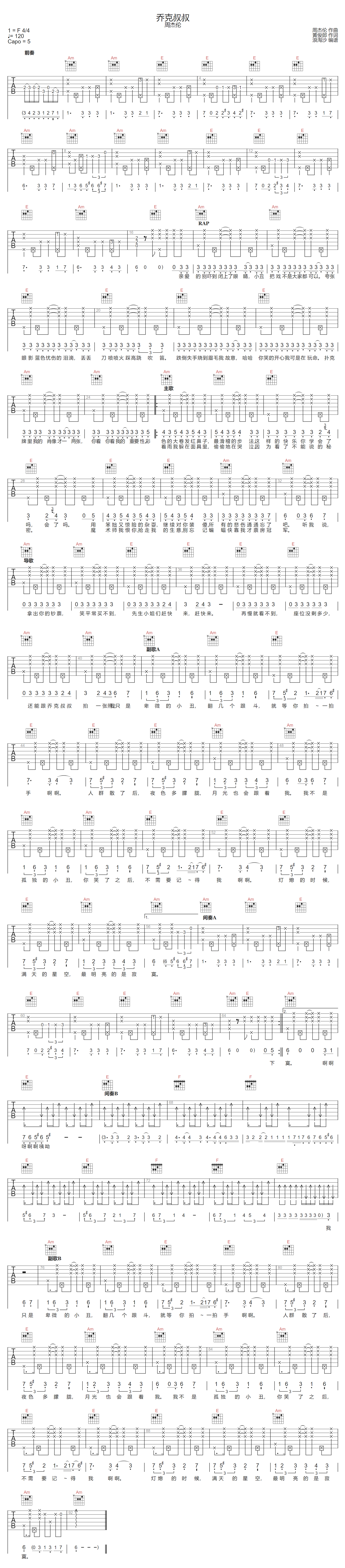 《周杰伦《乔克叔叔吉他谱》(G调)》内容来自于互联网,不能保证内容的准确性与完整性,仅供学习交流欣赏,请勿用于其它用途,内容版权归原作者及来源网站所有,如有侵犯到您的权益请来信告知,我们将及时删除。