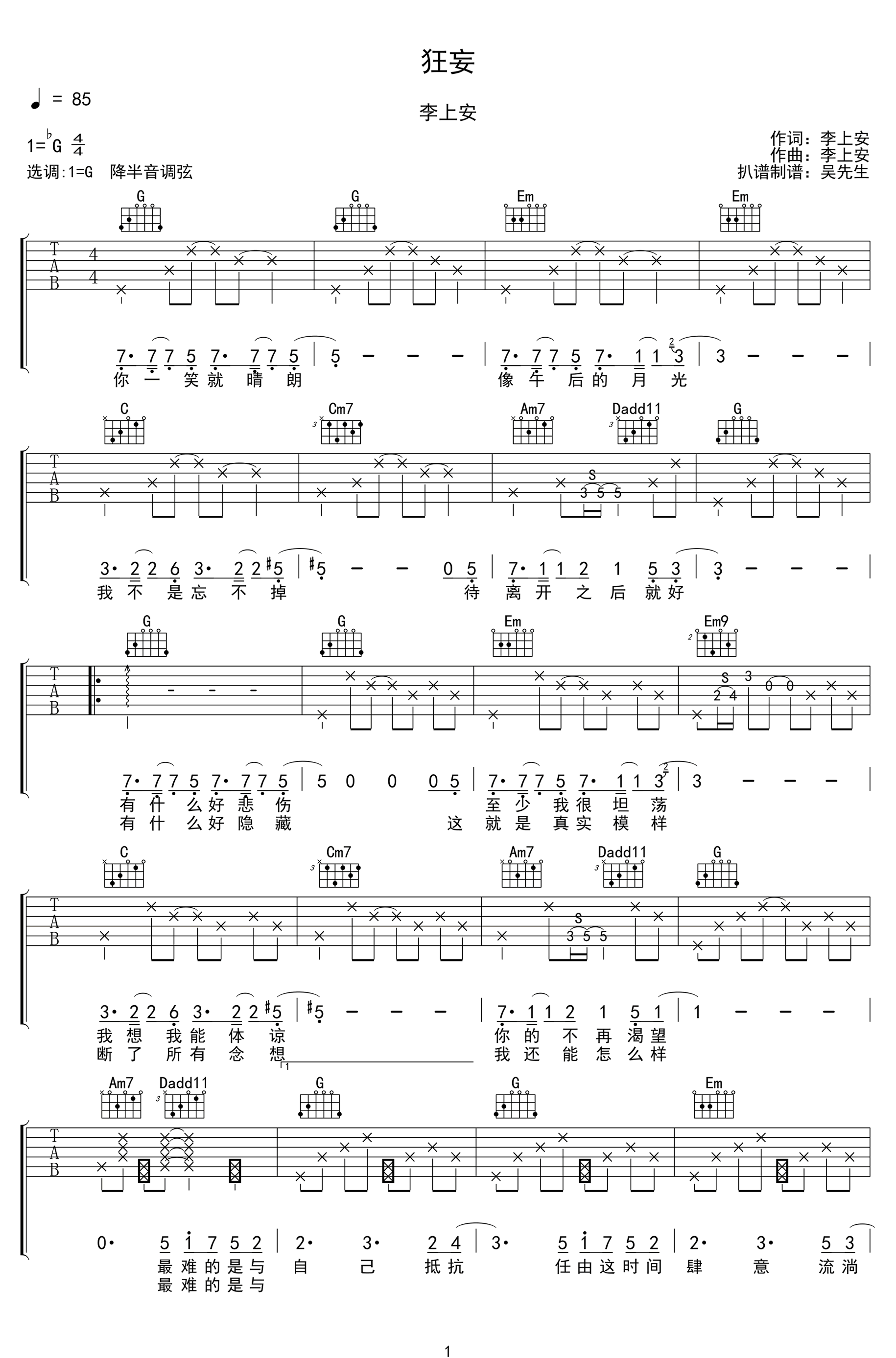 本文标题 《李上安《狂妄吉他谱》(A调)》,网址:https://www.21qupu.com/guitar/62426.html
