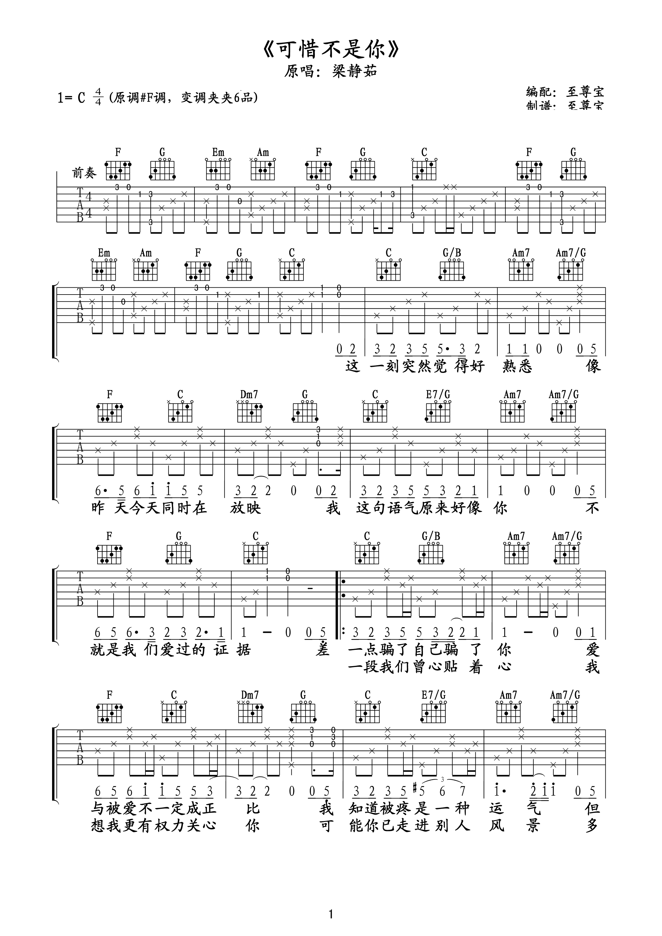 《梁静茹《可惜不是你吉他谱》(A调)》内容来自于互联网,不能保证内容的准确性与完整性,仅供学习交流欣赏,请勿用于其它用途,内容版权归原作者及来源网站所有,如有侵犯到您的权益请来信告知,我们将及时删除。