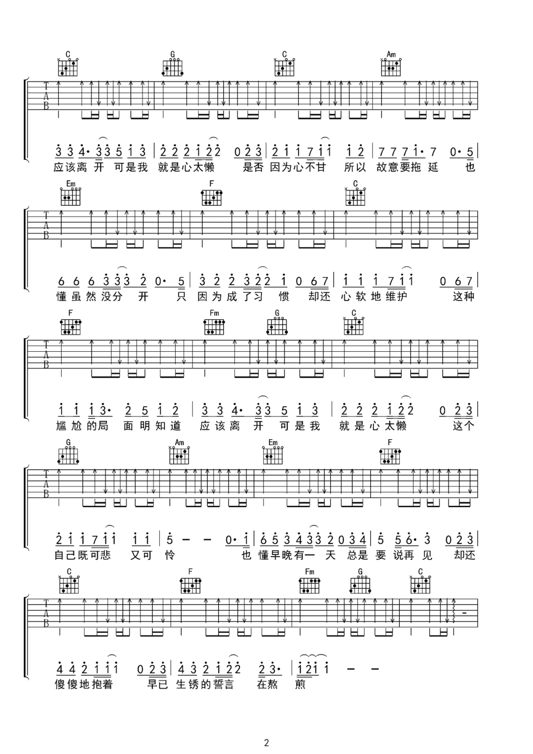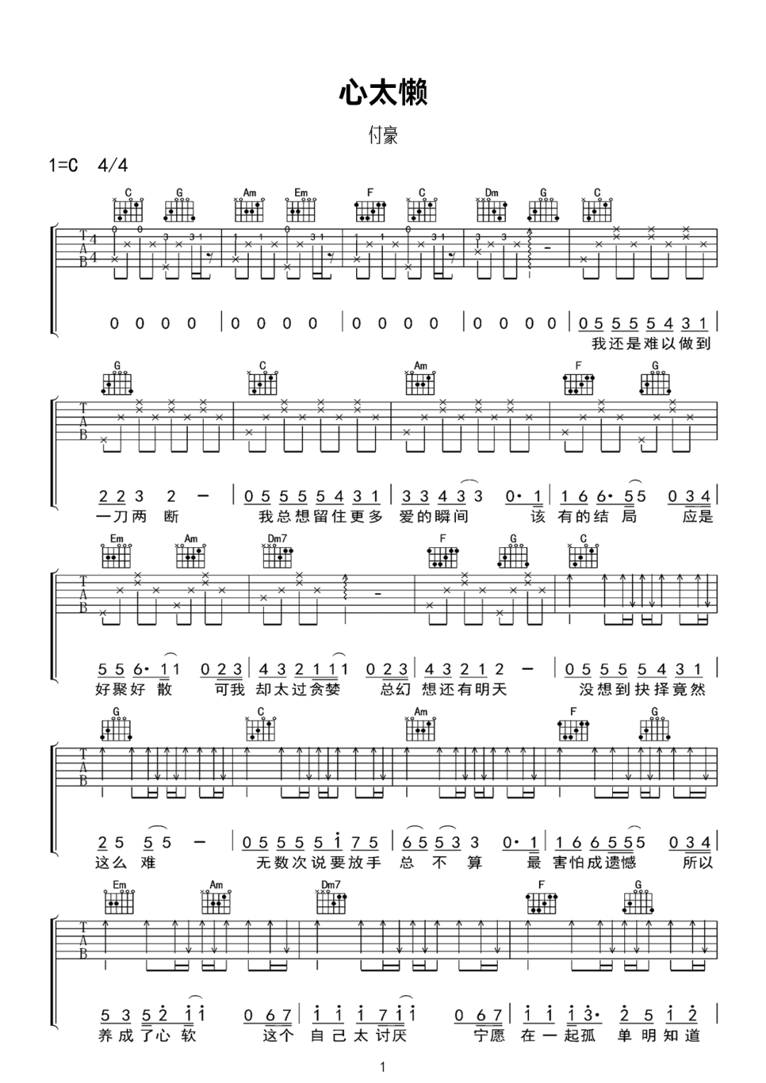《付豪《心太懒吉他谱》(G调)》内容来自于互联网,不能保证内容的准确性与完整性,仅供学习交流欣赏,请勿用于其它用途,内容版权归原作者及来源网站所有,如有侵犯到您的权益请来信告知,我们将及时删除。