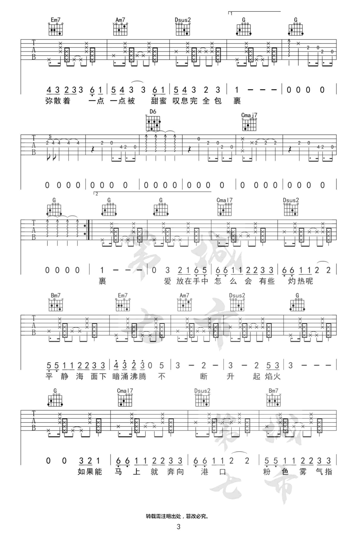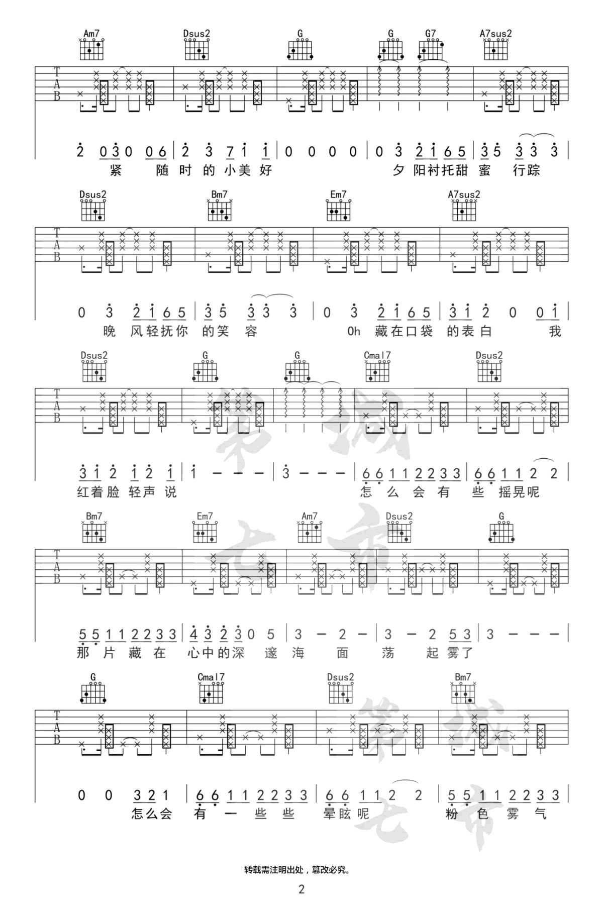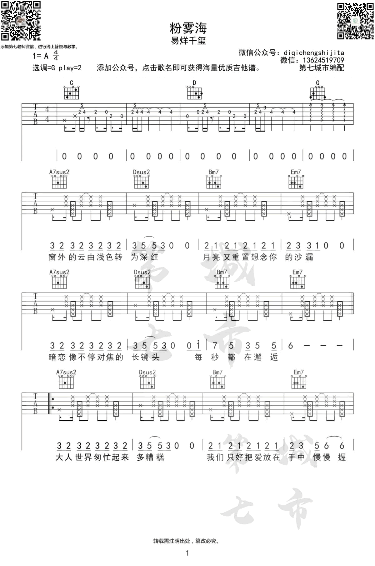 《易烊千玺《粉雾海吉他谱》(C调)》内容来自于互联网,不能保证内容的准确性与完整性,仅供学习交流欣赏,请勿用于其它用途,内容版权归原作者及来源网站所有,如有侵犯到您的权益请来信告知,我们将及时删除。