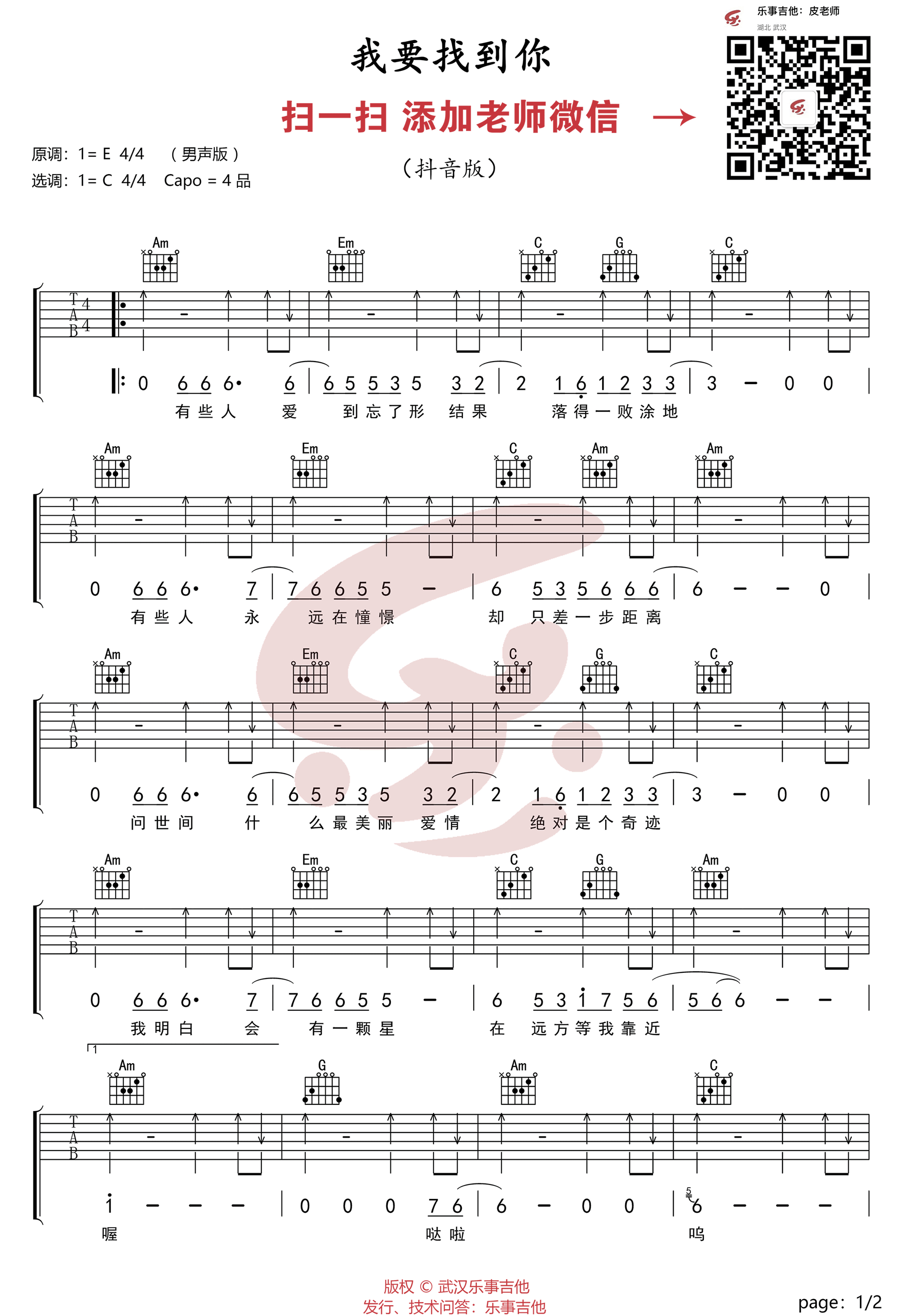 《陈明《我要找到你吉他谱》(G调)》内容来自于互联网,不能保证内容的准确性与完整性,仅供学习交流欣赏,请勿用于其它用途,内容版权归原作者及来源网站所有,如有侵犯到您的权益请来信告知,我们将及时删除。
