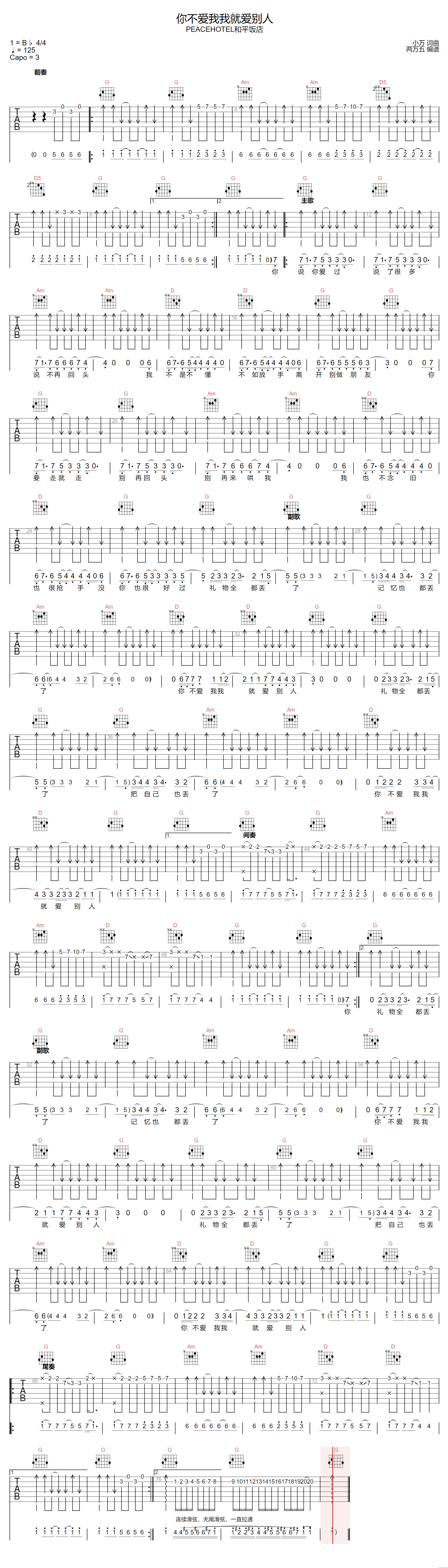 和平饭店《你不爱我我就爱别人吉他谱》(G调)