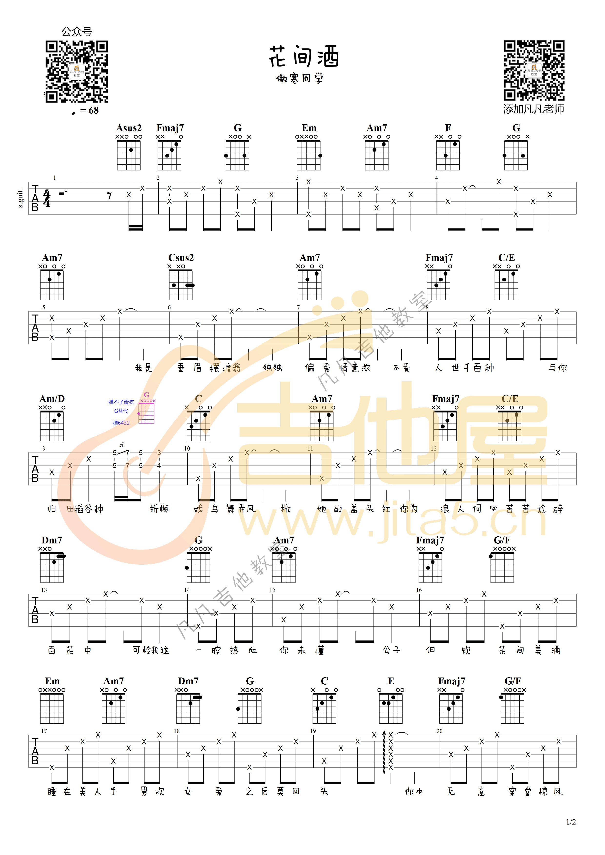 《傲寒同学《花间酒吉他谱》(C调)》内容来自于互联网,不能保证内容的准确性与完整性,仅供学习交流欣赏,请勿用于其它用途,内容版权归原作者及来源网站所有,如有侵犯到您的权益请来信告知,我们将及时删除。