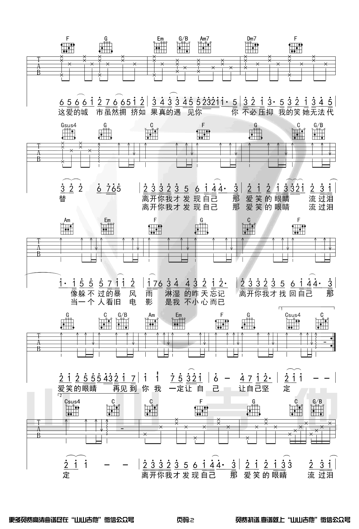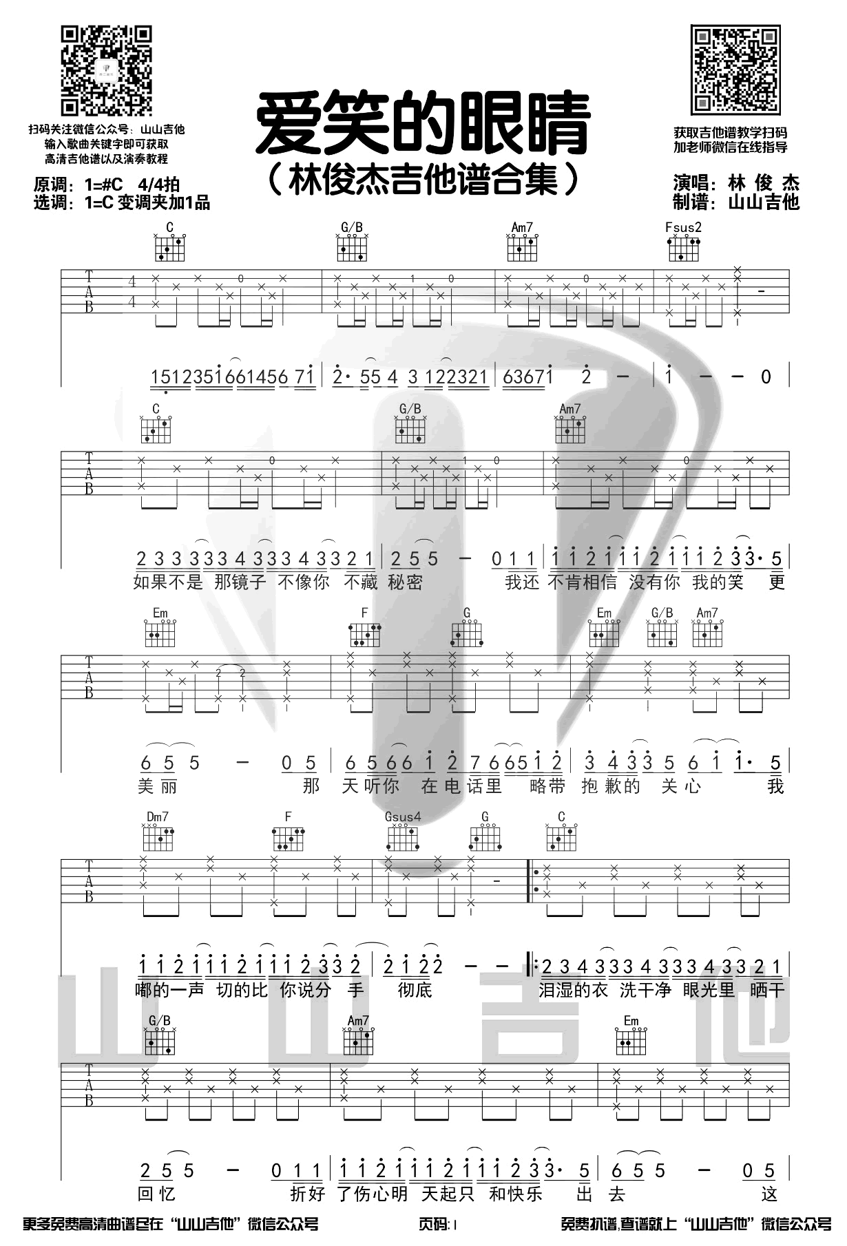 《林俊杰《爱笑的眼睛吉他谱》(C调)》内容来自于互联网,不能保证内容的准确性与完整性,仅供学习交流欣赏,请勿用于其它用途,内容版权归原作者及来源网站所有,如有侵犯到您的权益请来信告知,我们将及时删除。