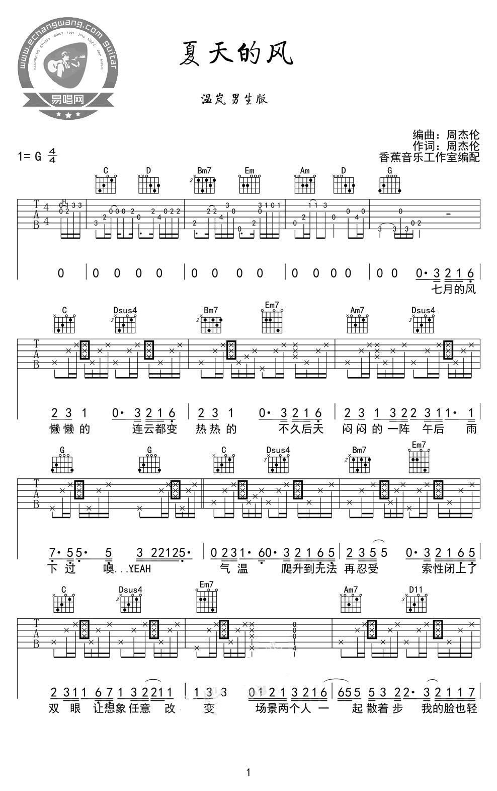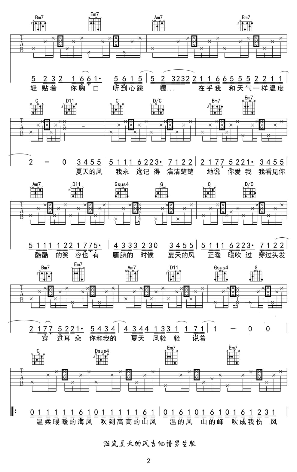 《温岚《夏天的风吉他谱》(G调)》内容来自于互联网,不能保证内容的准确性与完整性,仅供学习交流欣赏,请勿用于其它用途,内容版权归原作者及来源网站所有,如有侵犯到您的权益请来信告知,我们将及时删除。