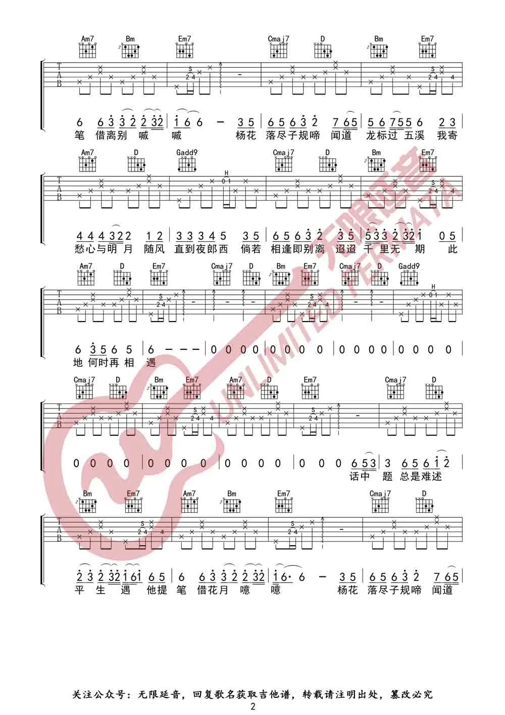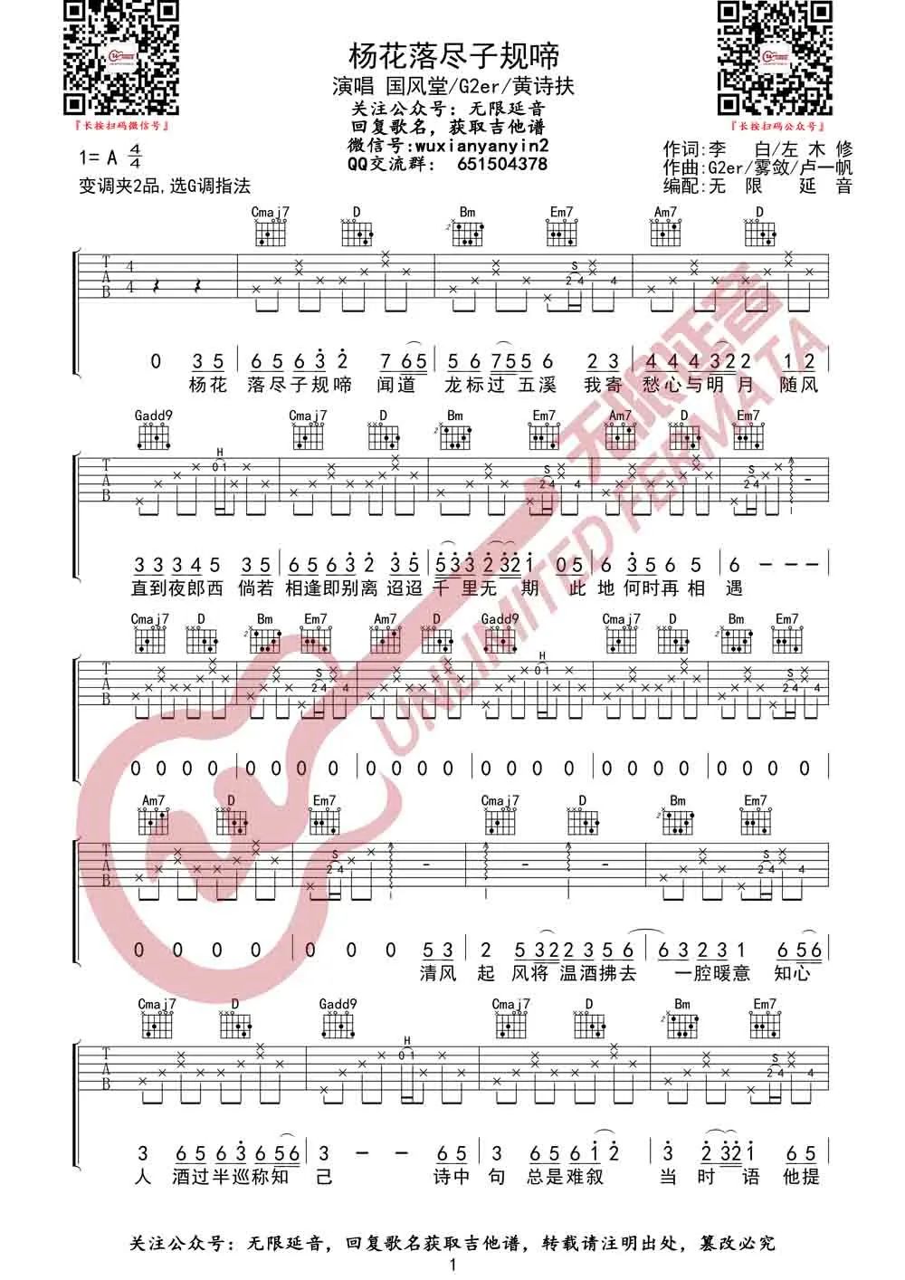 杨花落尽子规啼国风堂/G2er/黄诗扶演唱G调。全谱,原曲为,变调夹夹2品。G2er/国风堂/G2er/黄诗扶_-图1杨花落尽子规啼,谱,出品。