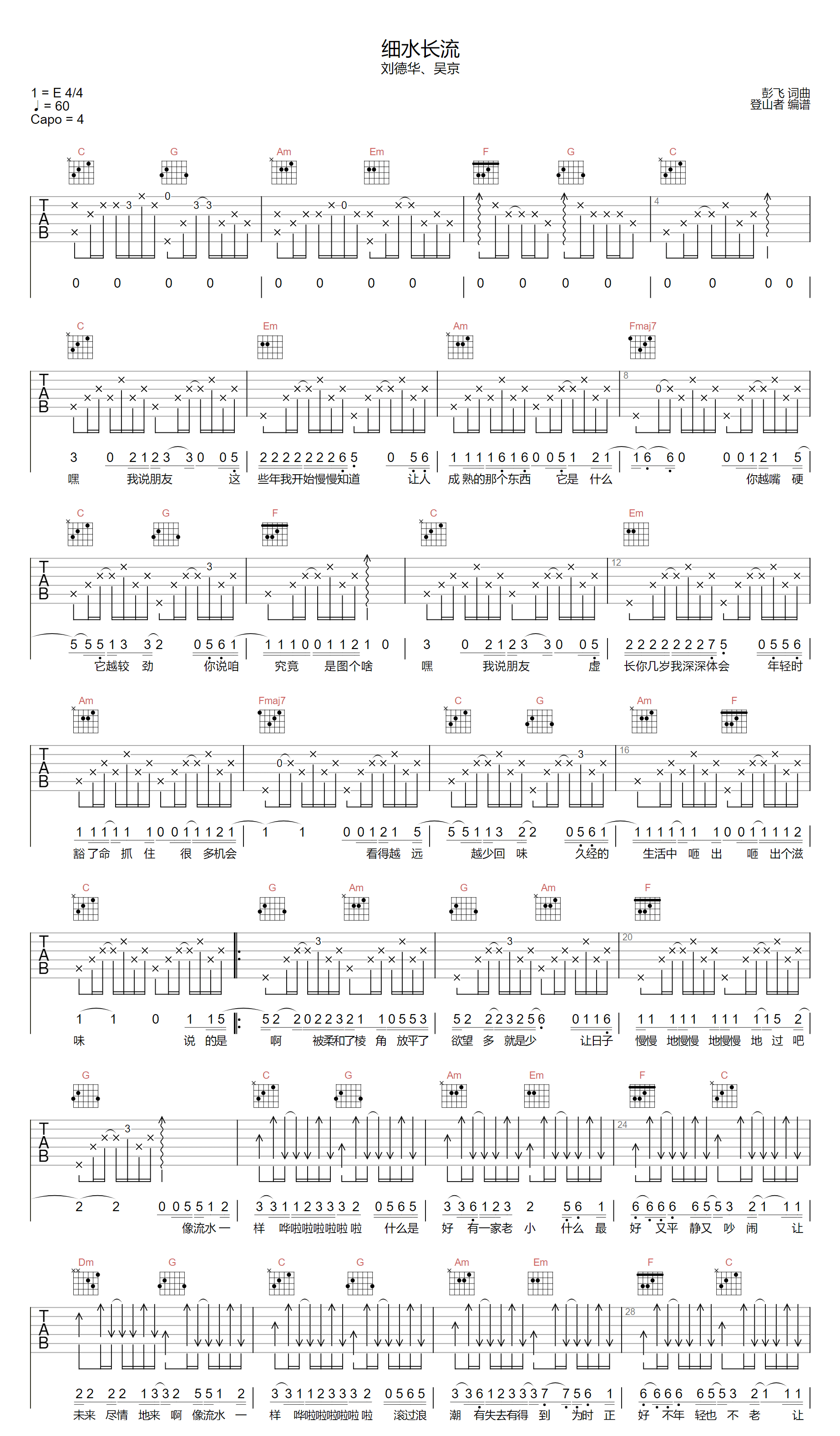 《刘德华/吴京《细水长流吉他谱》(G调)》内容来自于互联网,不能保证内容的准确性与完整性,仅供学习交流欣赏,请勿用于其它用途,内容版权归原作者及来源网站所有,如有侵犯到您的权益请来信告知,我们将及时删除。