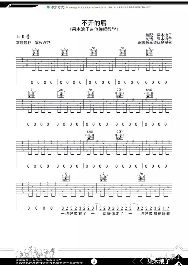 《赵雷《不开的唇吉他谱》(C调)》内容来自于互联网,不能保证内容的准确性与完整性,仅供学习交流欣赏,请勿用于其它用途,内容版权归原作者及来源网站所有,如有侵犯到您的权益请来信告知,我们将及时删除。