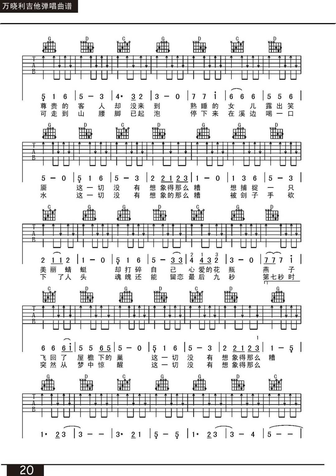 《万晓利《这一切没有想象的那么糟吉他谱》(G调)》内容来自于互联网,不能保证内容的准确性与完整性,仅供学习交流欣赏,请勿用于其它用途,内容版权归原作者及来源网站所有,如有侵犯到您的权益请来信告知,我们将及时删除。