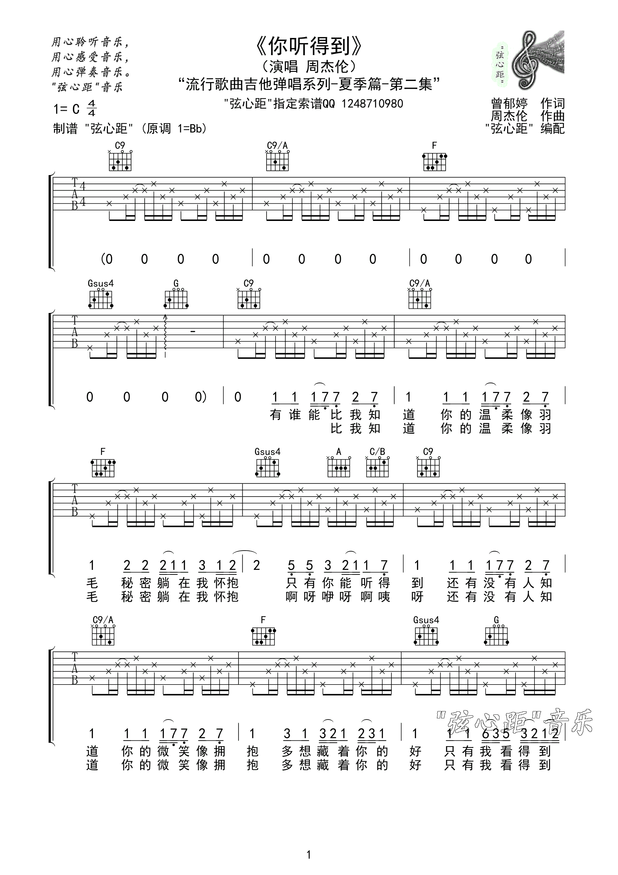 《周杰伦《你听得到吉他谱》(G调)》内容来自于互联网,不能保证内容的准确性与完整性,仅供学习交流欣赏,请勿用于其它用途,内容版权归原作者及来源网站所有,如有侵犯到您的权益请来信告知,我们将及时删除。