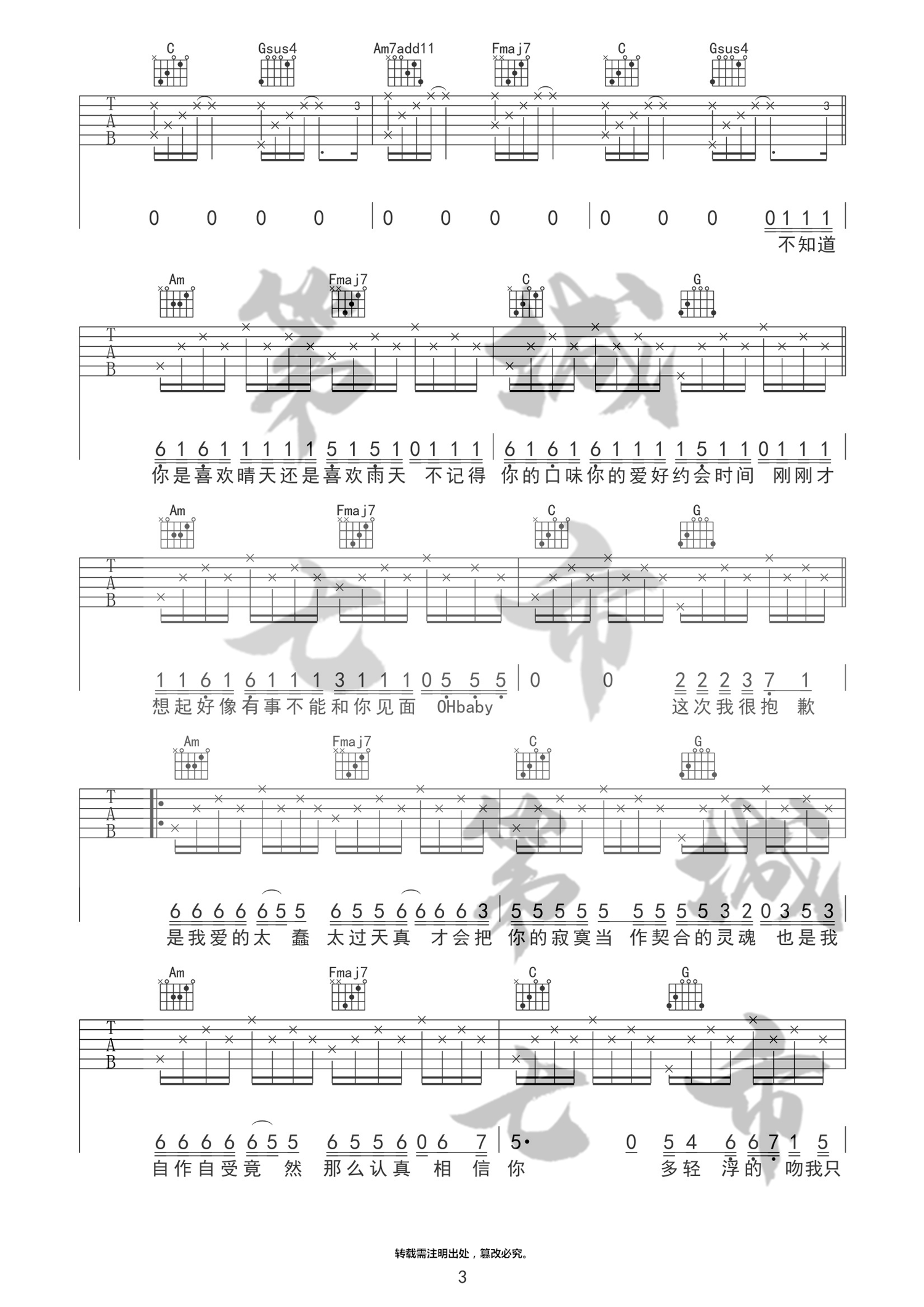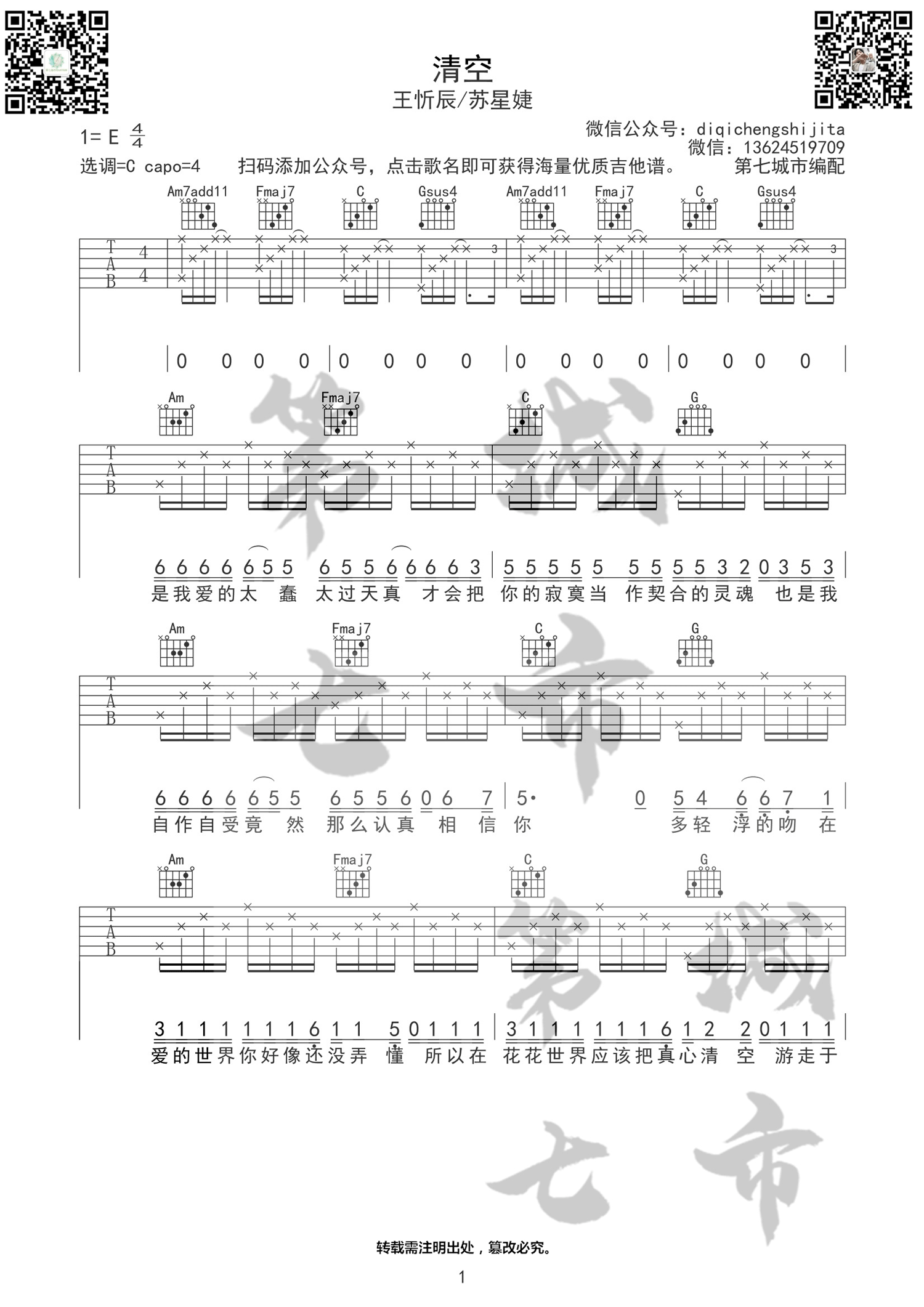 《王忻辰/苏星婕《清空吉他谱》(G调)》内容来自于互联网,不能保证内容的准确性与完整性,仅供学习交流欣赏,请勿用于其它用途,内容版权归原作者及来源网站所有,如有侵犯到您的权益请来信告知,我们将及时删除。