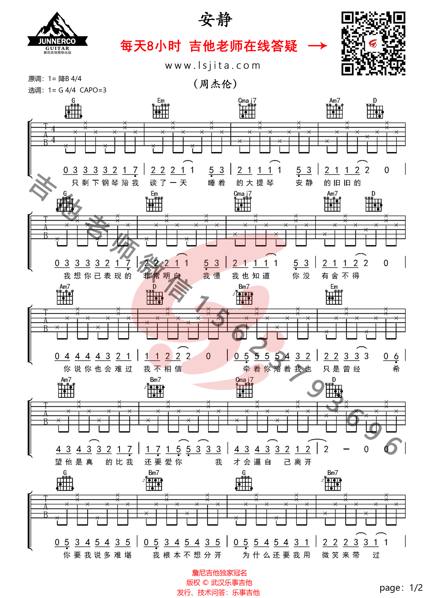 《周杰伦《安静吉他谱》(C调)》内容来自于互联网,不能保证内容的准确性与完整性,仅供学习交流欣赏,请勿用于其它用途,内容版权归原作者及来源网站所有,如有侵犯到您的权益请来信告知,我们将及时删除。