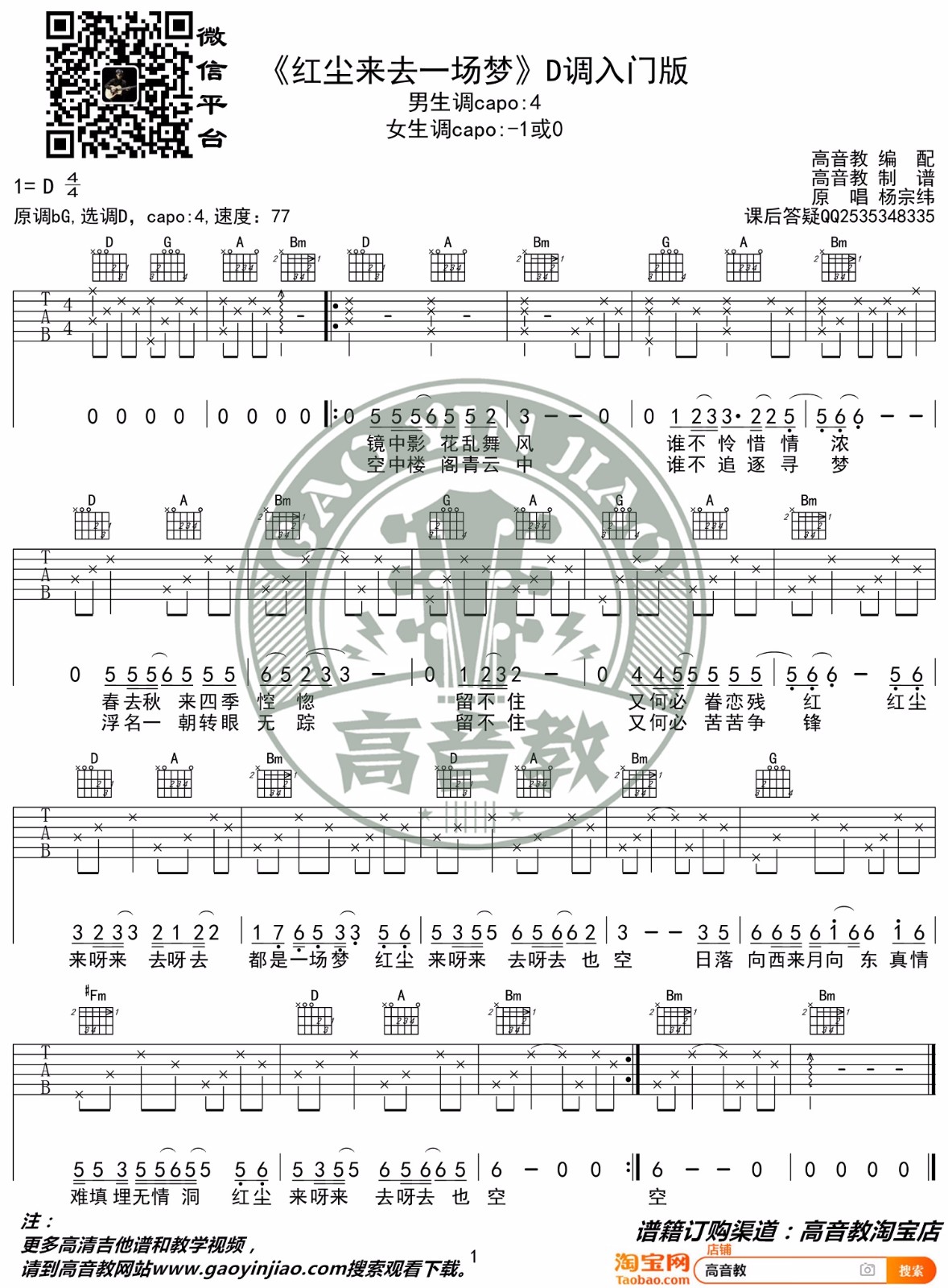 《杨宗纬《红尘来去一场梦吉他谱》(C调)》内容来自于互联网,不能保证内容的准确性与完整性,仅供学习交流欣赏,请勿用于其它用途,内容版权归原作者及来源网站所有,如有侵犯到您的权益请来信告知,我们将及时删除。