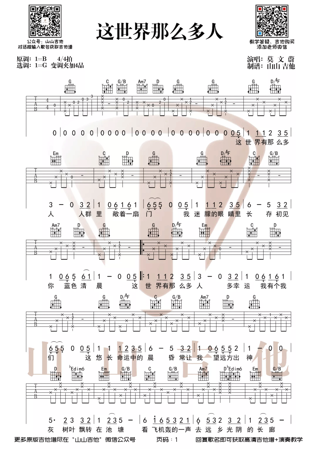 《莫文蔚《这世界那么多人吉他谱》(C调)》内容来自于互联网,不能保证内容的准确性与完整性,仅供学习交流欣赏,请勿用于其它用途,内容版权归原作者及来源网站所有,如有侵犯到您的权益请来信告知,我们将及时删除。