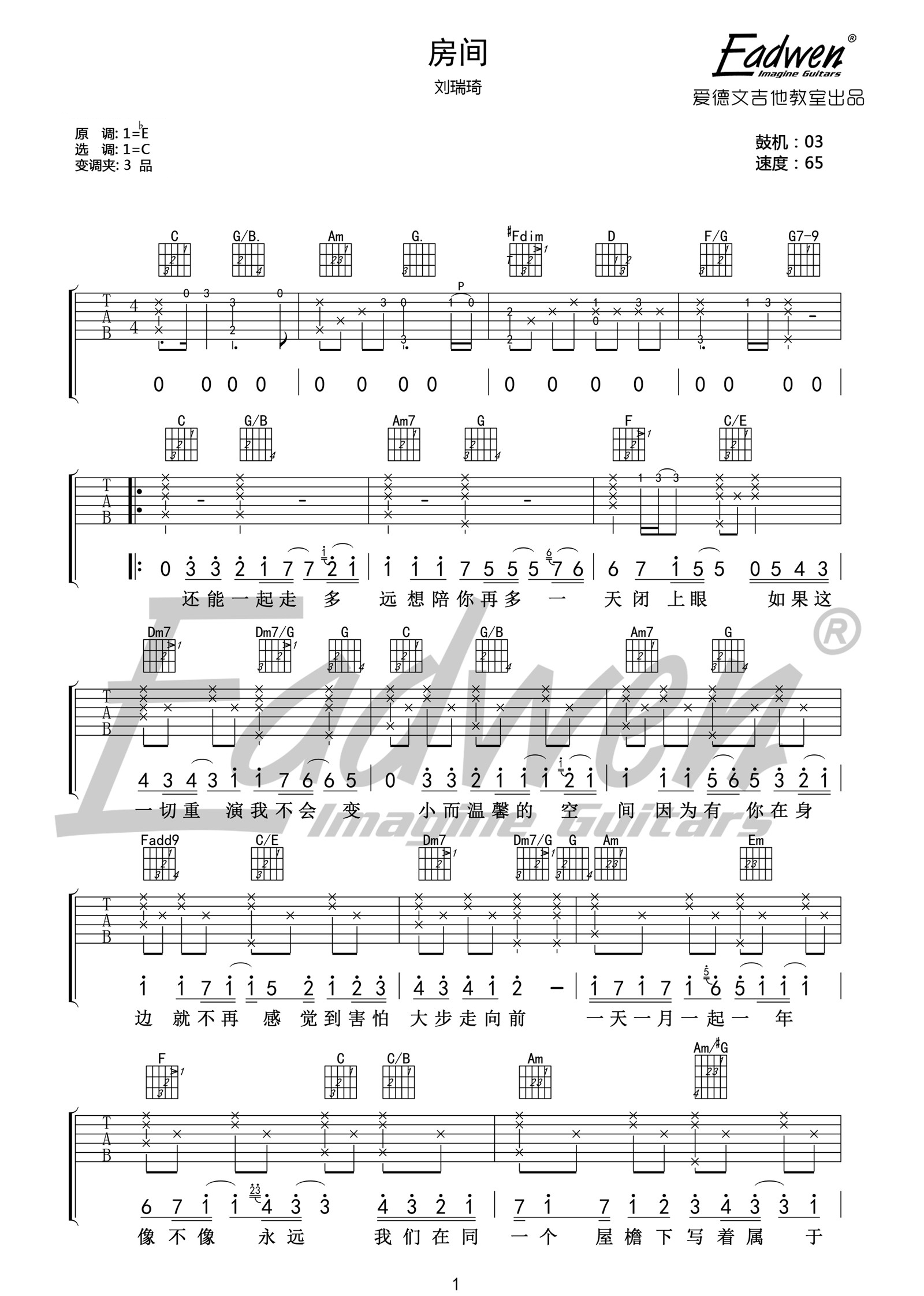 《刘瑞琦《房间吉他谱》(C调)》内容来自于互联网,不能保证内容的准确性与完整性,仅供学习交流欣赏,请勿用于其它用途,内容版权归原作者及来源网站所有,如有侵犯到您的权益请来信告知,我们将及时删除。