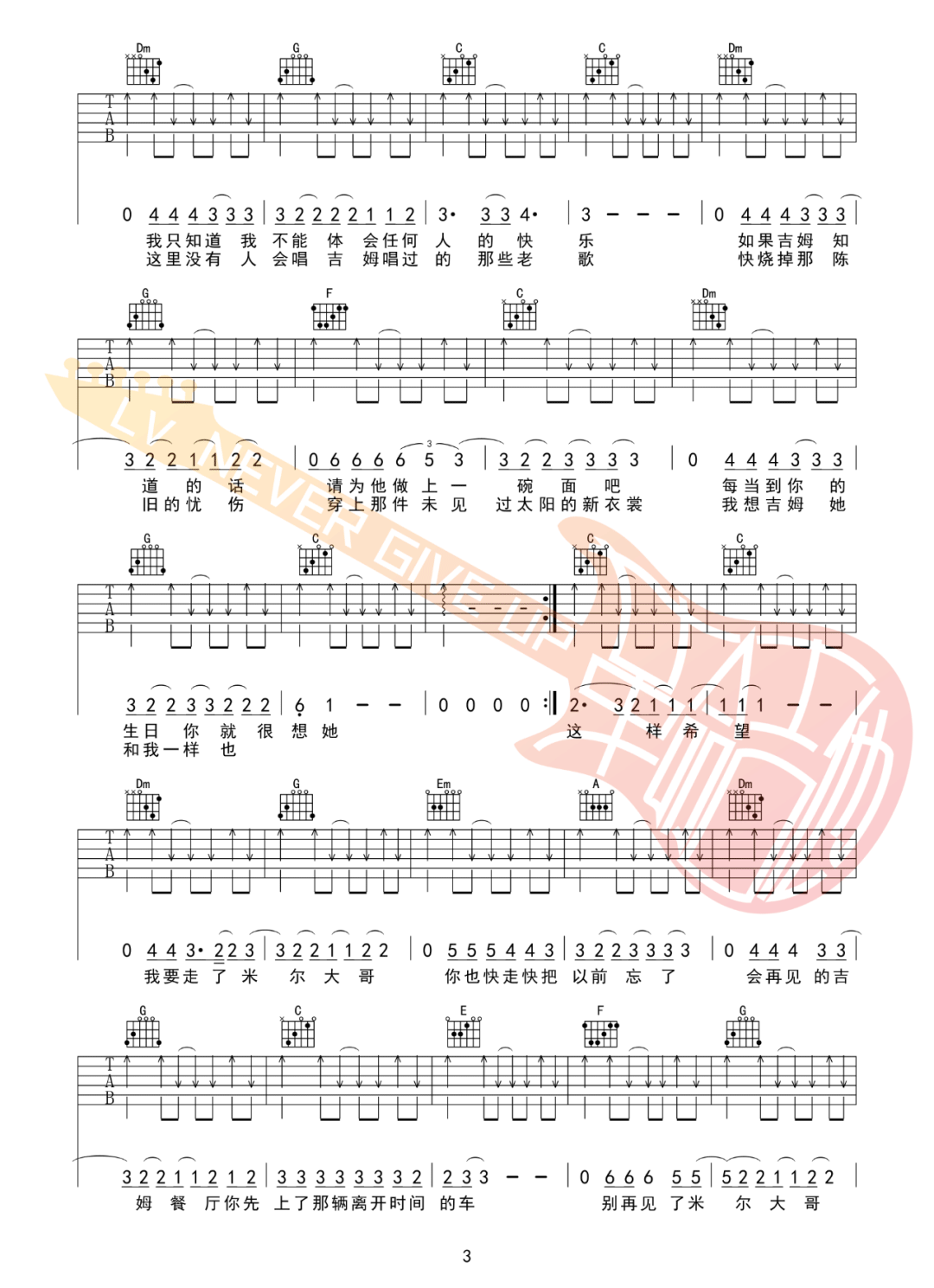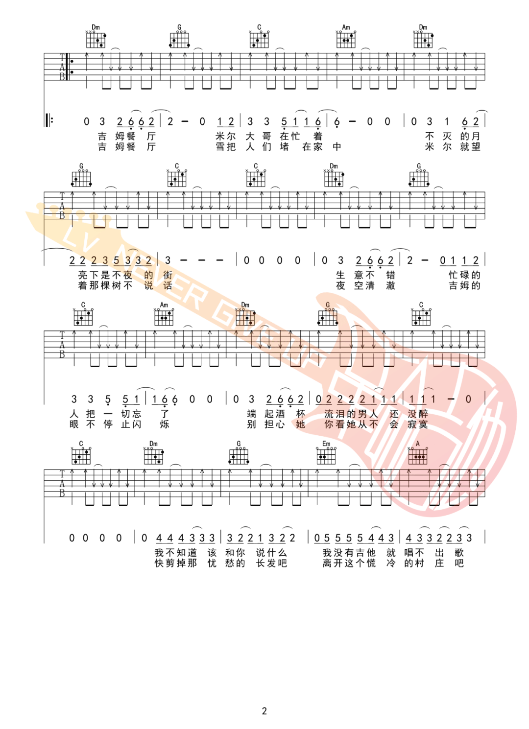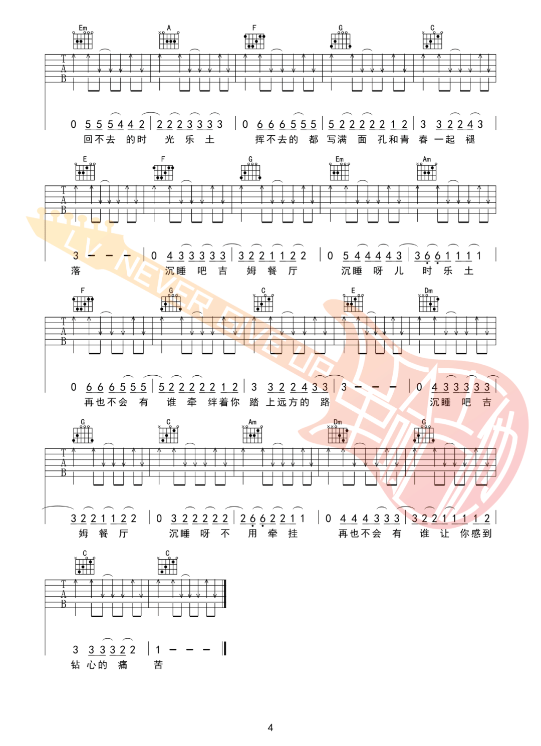 《赵雷《吉姆餐厅吉他谱》(C调)》内容来自于互联网,不能保证内容的准确性与完整性,仅供学习交流欣赏,请勿用于其它用途,内容版权归原作者及来源网站所有,如有侵犯到您的权益请来信告知,我们将及时删除。