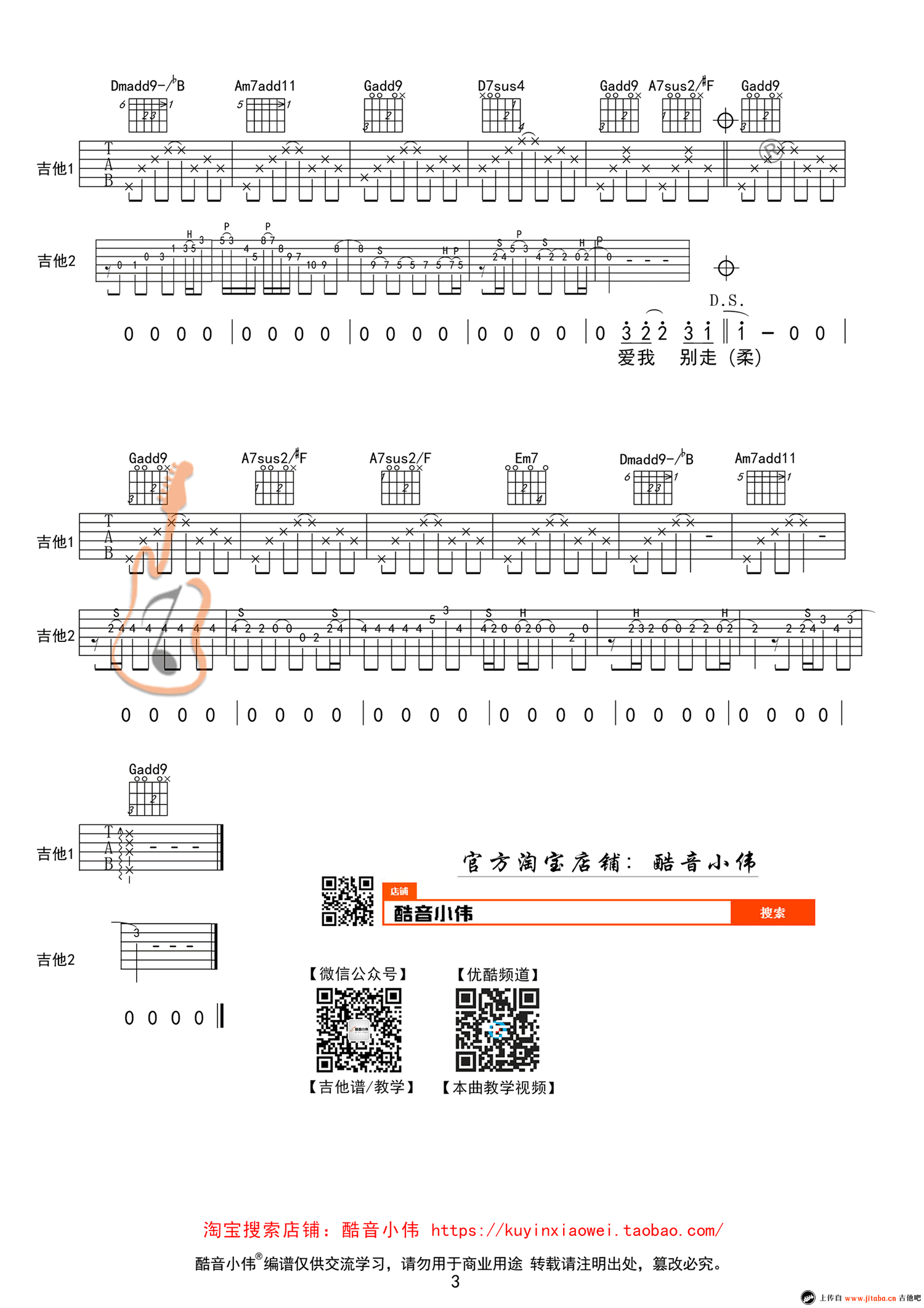 《张震岳《爱我别走吉他谱》(G调)》内容来自于互联网,不能保证内容的准确性与完整性,仅供学习交流欣赏,请勿用于其它用途,内容版权归原作者及来源网站所有,如有侵犯到您的权益请来信告知,我们将及时删除。