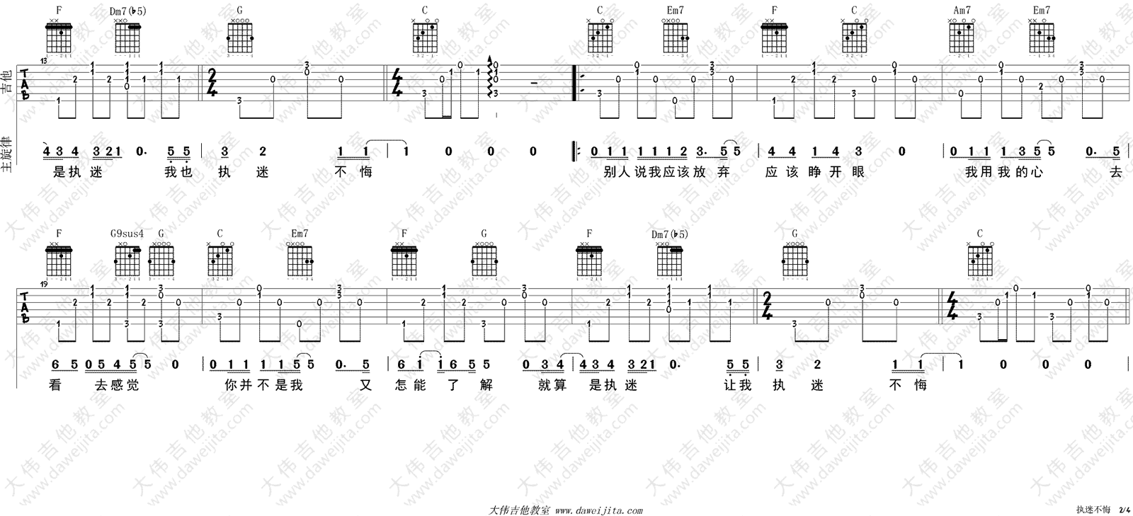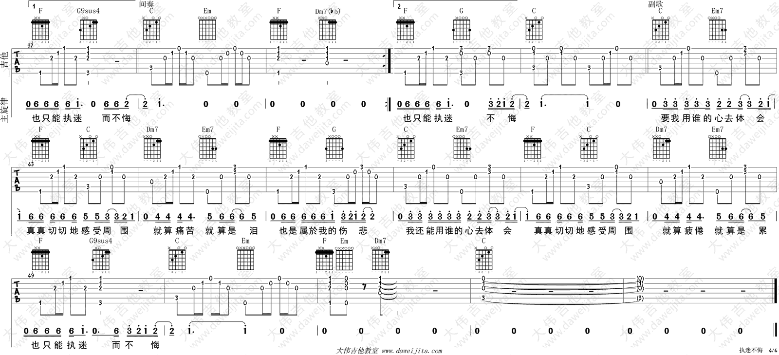 《王菲《执迷不悔吉他谱》(G调)》内容来自于互联网,不能保证内容的准确性与完整性,仅供学习交流欣赏,请勿用于其它用途,内容版权归原作者及来源网站所有,如有侵犯到您的权益请来信告知,我们将及时删除。