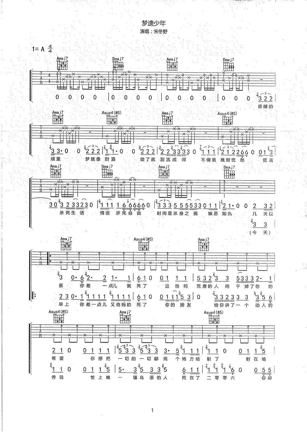 《宋冬野《梦遗少年吉他谱》(D调)》内容来自于互联网,不能保证内容的准确性与完整性,仅供学习交流欣赏,请勿用于其它用途,内容版权归原作者及来源网站所有,如有侵犯到您的权益请来信告知,我们将及时删除。