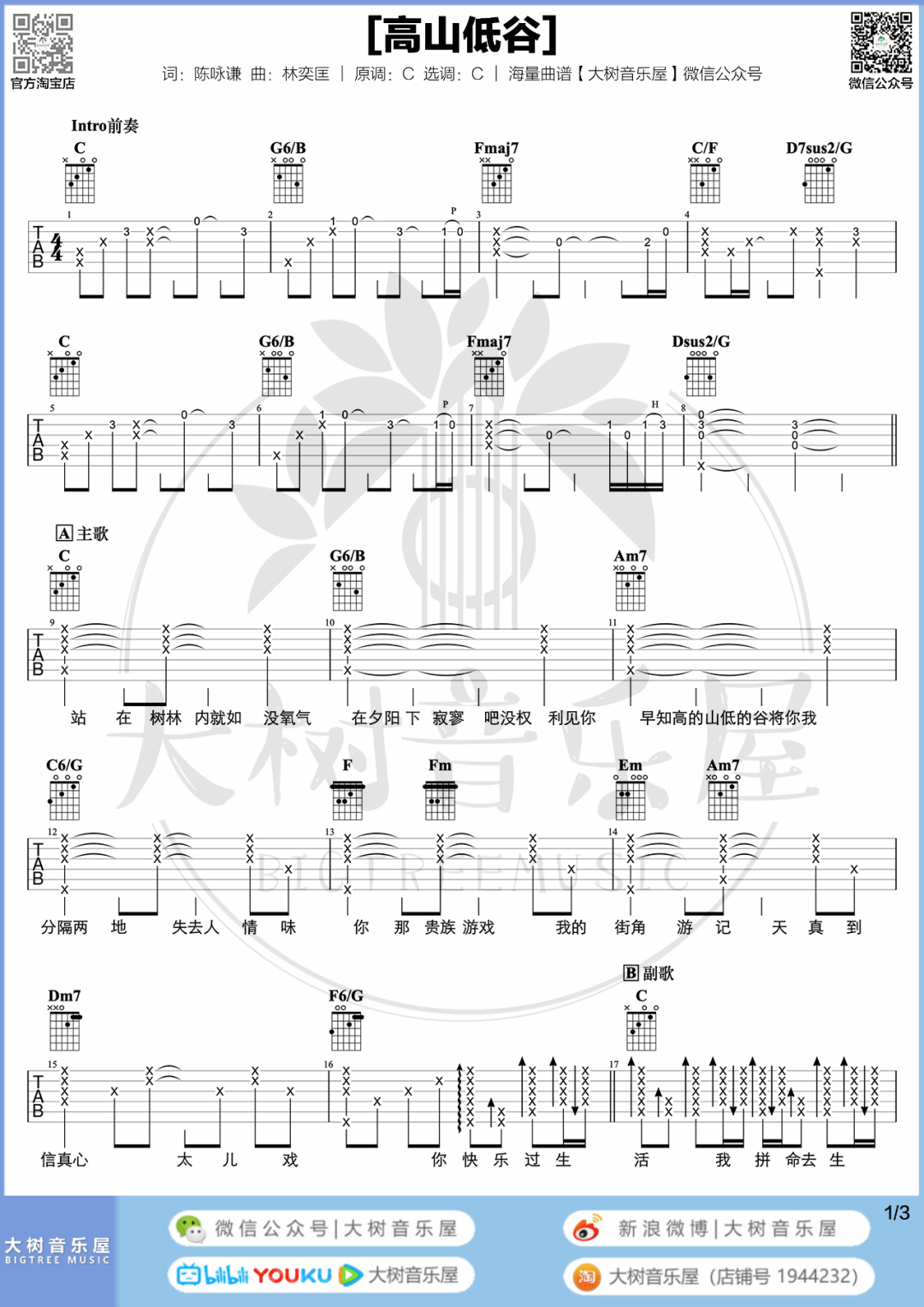 《林奕匡《高山低谷吉他谱》(G调)》内容来自于互联网,不能保证内容的准确性与完整性,仅供学习交流欣赏,请勿用于其它用途,内容版权归原作者及来源网站所有,如有侵犯到您的权益请来信告知,我们将及时删除。