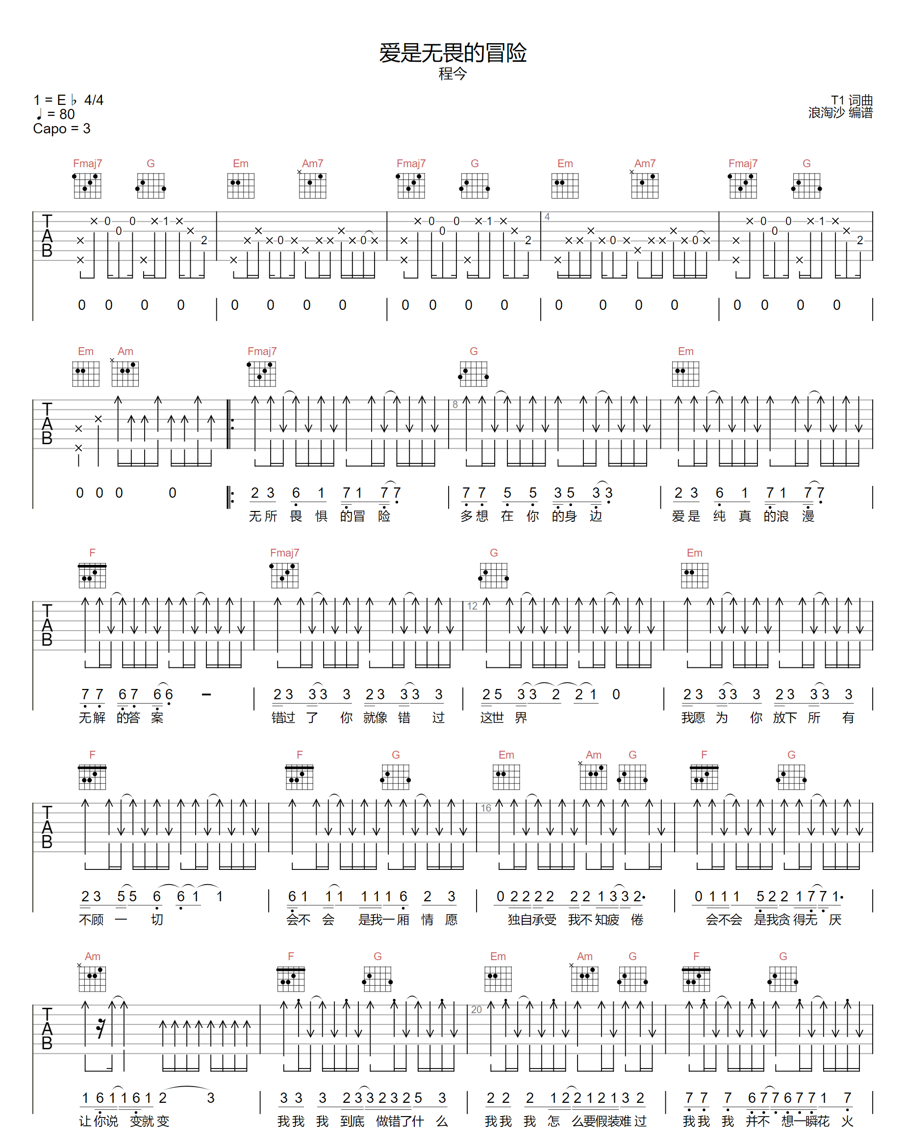 《程今《爱是无畏的冒险吉他谱》(G调)》内容来自于互联网,不能保证内容的准确性与完整性,仅供学习交流欣赏,请勿用于其它用途,内容版权归原作者及来源网站所有,如有侵犯到您的权益请来信告知,我们将及时删除。
