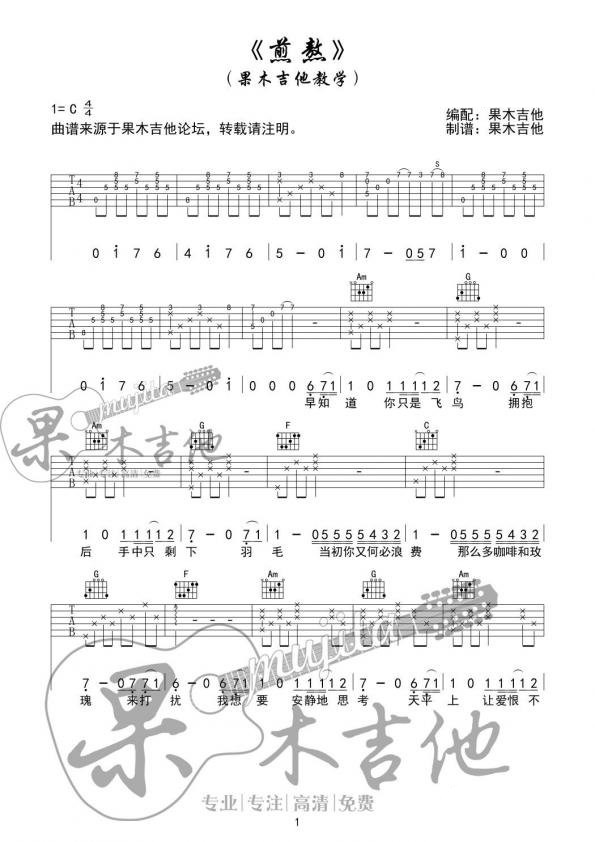 《李佳薇/尹毓恪《煎熬吉他谱》(C调)》内容来自于互联网,不能保证内容的准确性与完整性,仅供学习交流欣赏,请勿用于其它用途,内容版权归原作者及来源网站所有,如有侵犯到您的权益请来信告知,我们将及时删除。