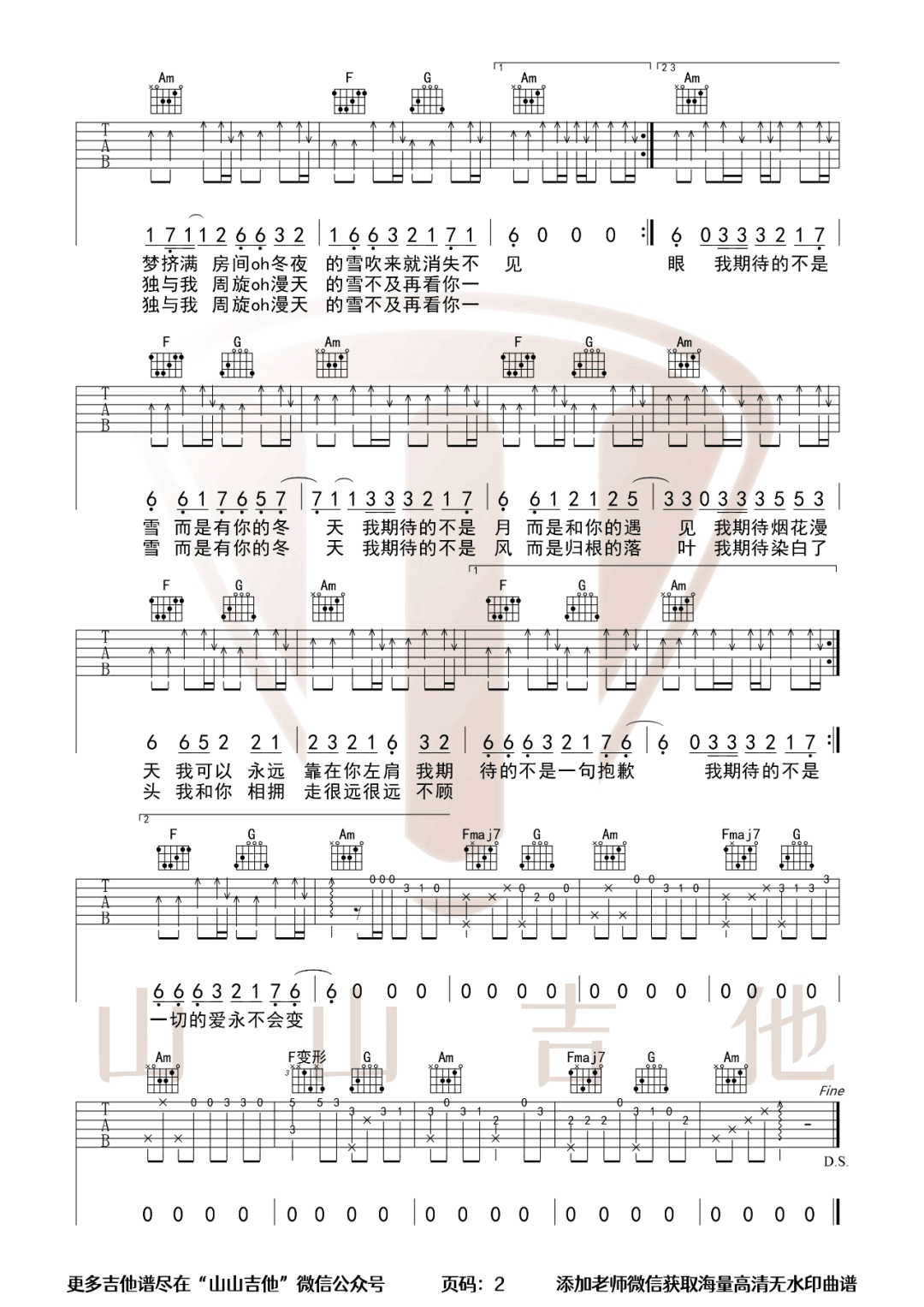 《张妙格《我期待的不是雪吉他谱》(G调)》内容来自于互联网,不能保证内容的准确性与完整性,仅供学习交流欣赏,请勿用于其它用途,内容版权归原作者及来源网站所有,如有侵犯到您的权益请来信告知,我们将及时删除。