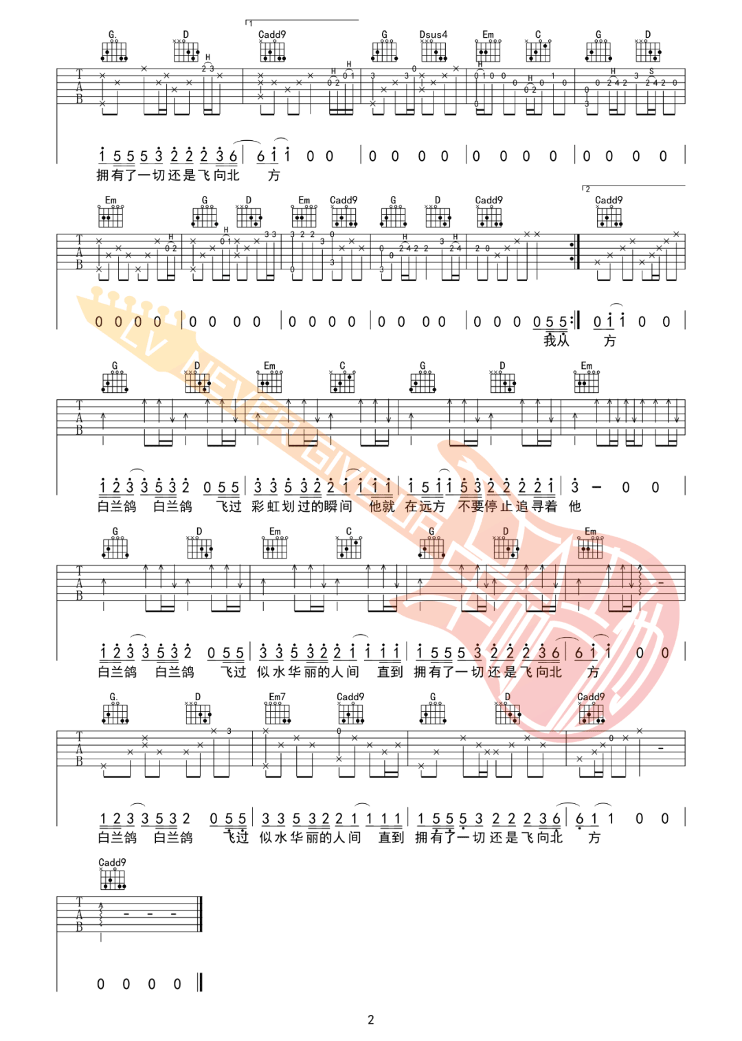 《丢火车乐队《白兰鸽巡游记吉他谱》(G调)》内容来自于互联网,不能保证内容的准确性与完整性,仅供学习交流欣赏,请勿用于其它用途,内容版权归原作者及来源网站所有,如有侵犯到您的权益请来信告知,我们将及时删除。