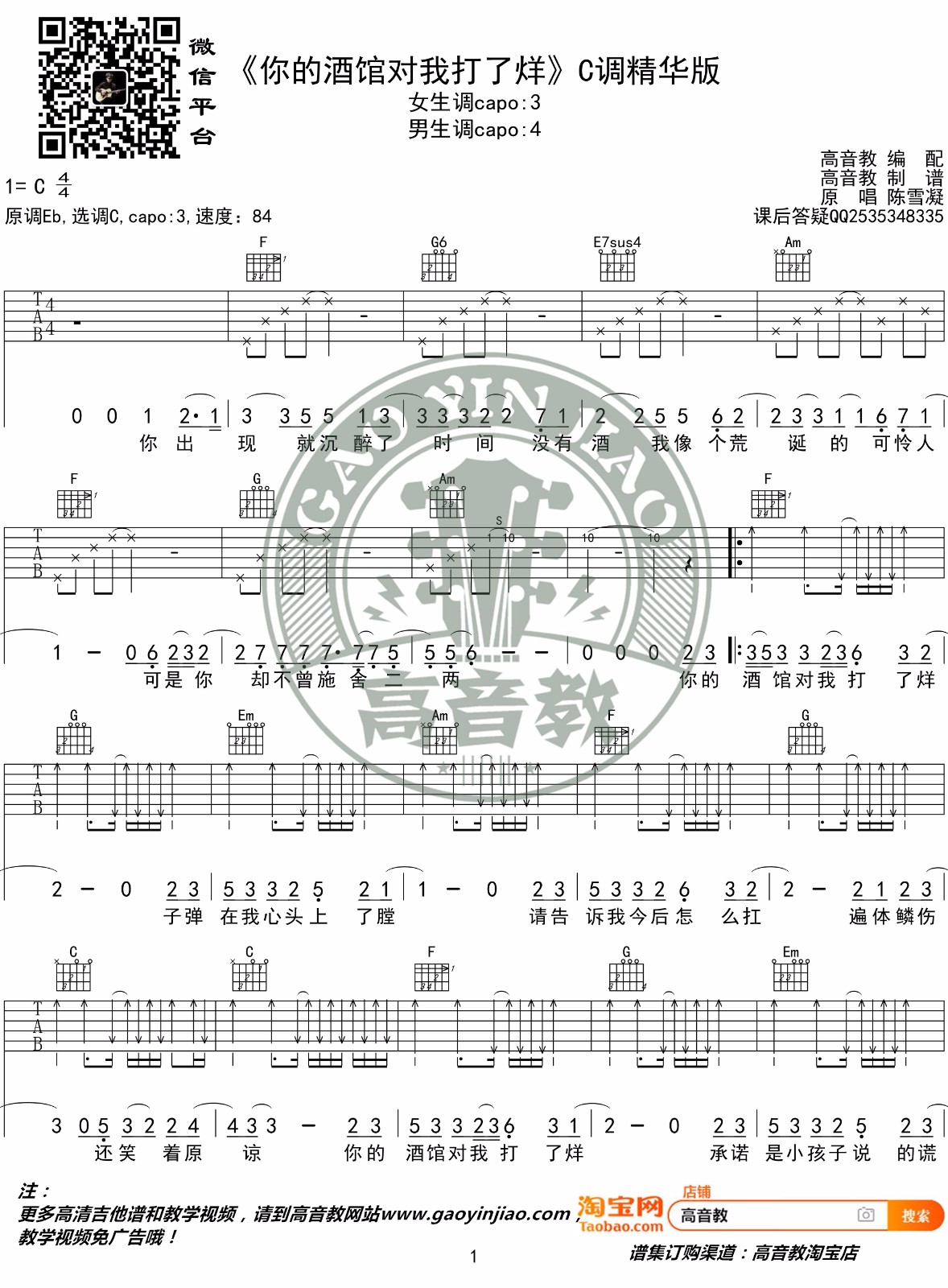 《陈雪凝《你的酒馆对我打了烊吉他谱》(C调)》内容来自于互联网,不能保证内容的准确性与完整性,仅供学习交流欣赏,请勿用于其它用途,内容版权归原作者及来源网站所有,如有侵犯到您的权益请来信告知,我们将及时删除。