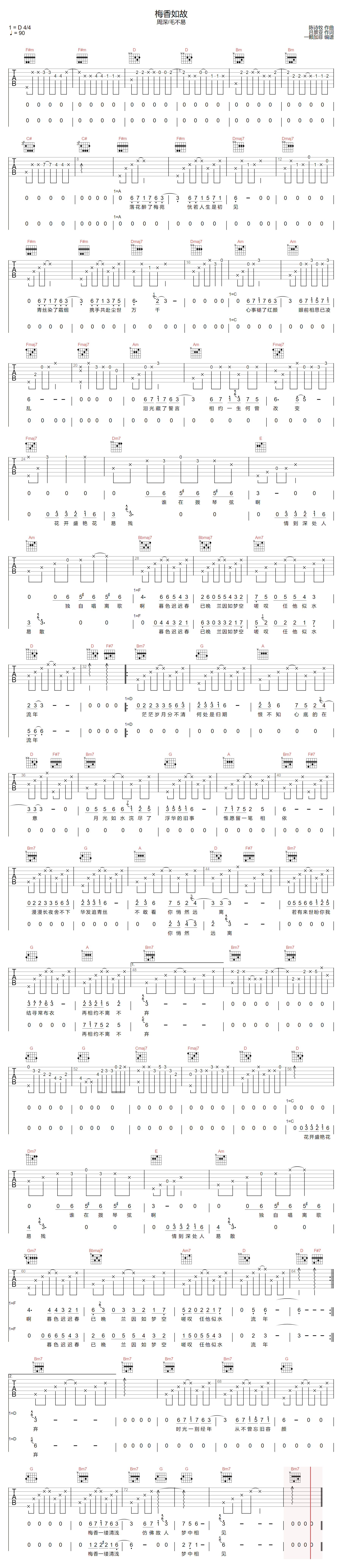 《周深/毛不易《梅香如故吉他谱》(G调)》内容来自于互联网,不能保证内容的准确性与完整性,仅供学习交流欣赏,请勿用于其它用途,内容版权归原作者及来源网站所有,如有侵犯到您的权益请来信告知,我们将及时删除。
