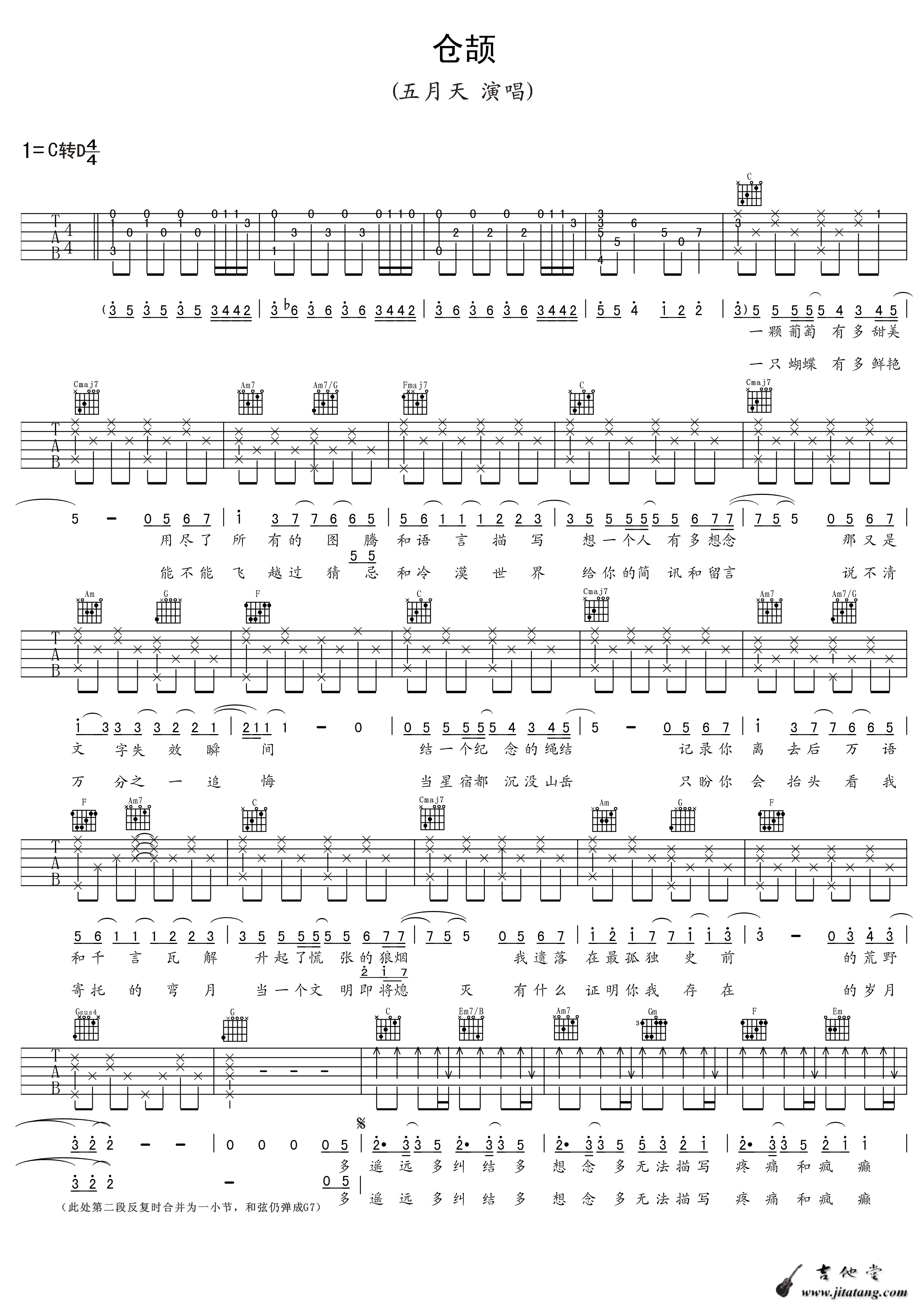 《五月天《仓颉吉他谱》(C调)》内容来自于互联网,不能保证内容的准确性与完整性,仅供学习交流欣赏,请勿用于其它用途,内容版权归原作者及来源网站所有,如有侵犯到您的权益请来信告知,我们将及时删除。