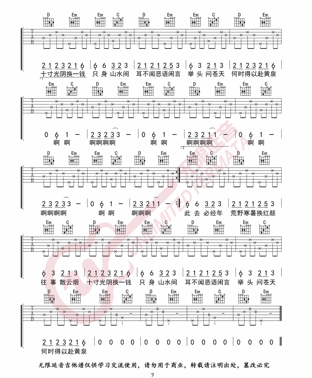 《花粥《归去来兮吉他谱》(F调)》内容来自于互联网,不能保证内容的准确性与完整性,仅供学习交流欣赏,请勿用于其它用途,内容版权归原作者及来源网站所有,如有侵犯到您的权益请来信告知,我们将及时删除。