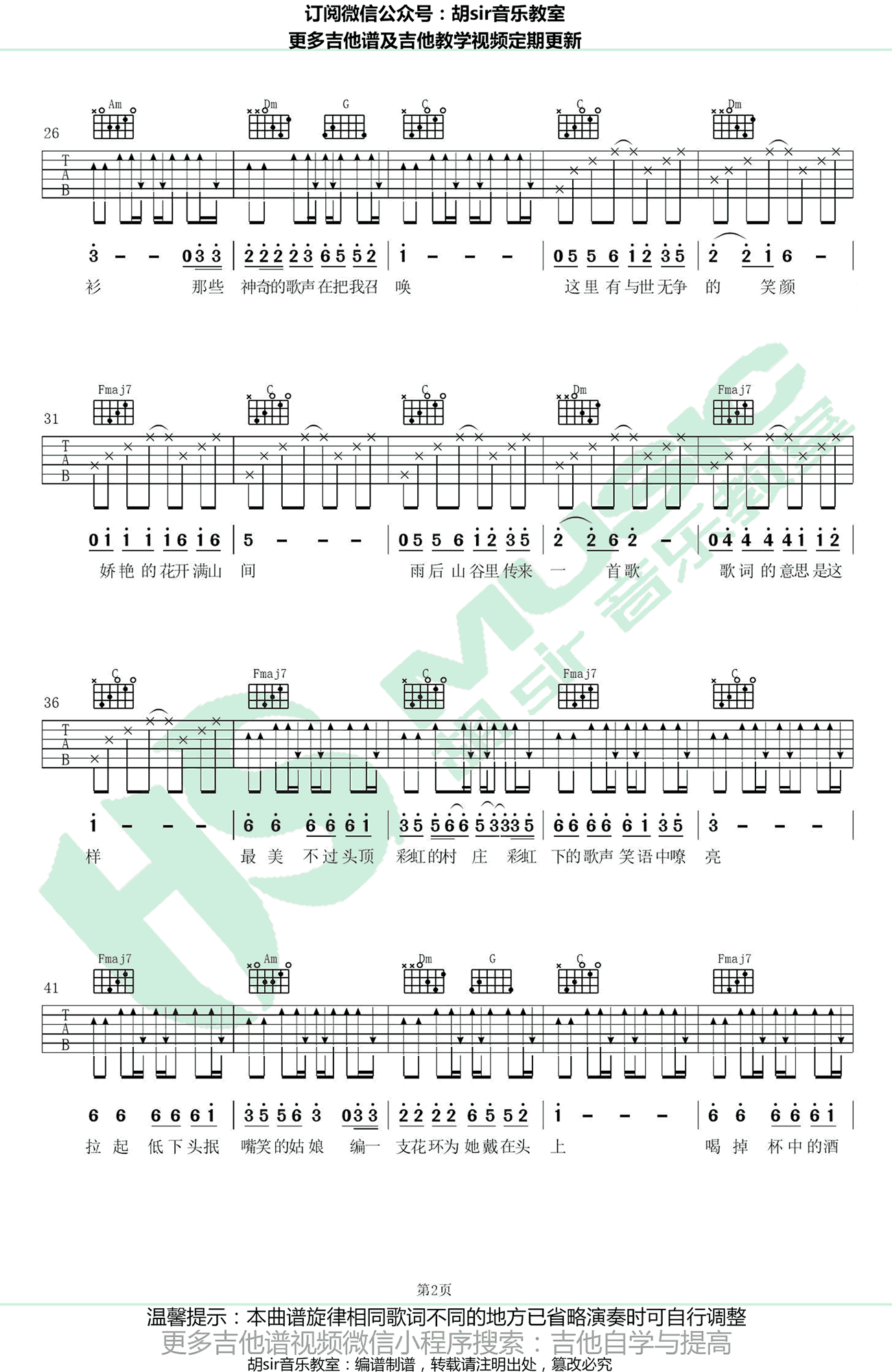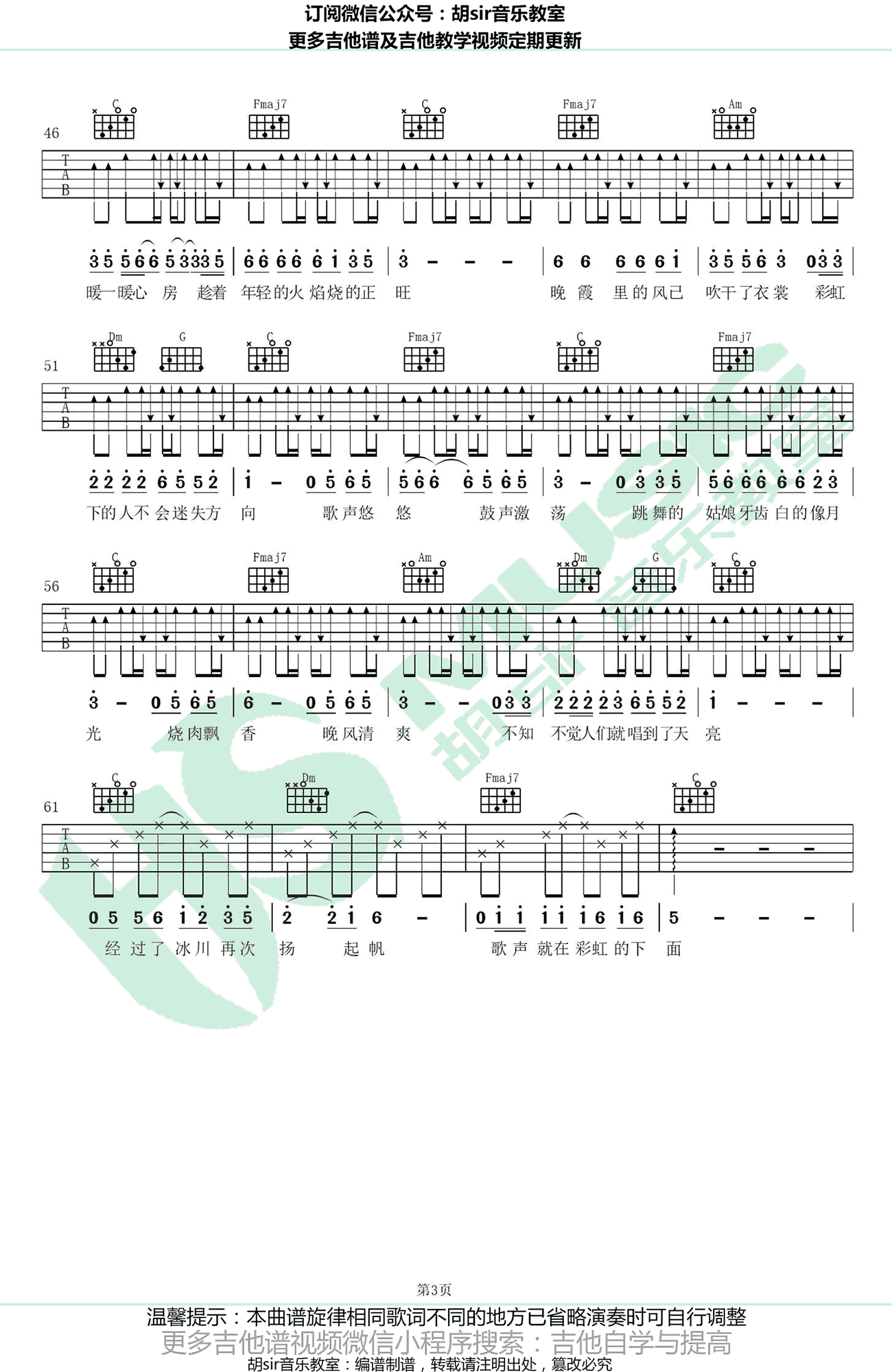 《赵雷《彩虹下面吉他谱》(C调)》内容来自于互联网,不能保证内容的准确性与完整性,仅供学习交流欣赏,请勿用于其它用途,内容版权归原作者及来源网站所有,如有侵犯到您的权益请来信告知,我们将及时删除。