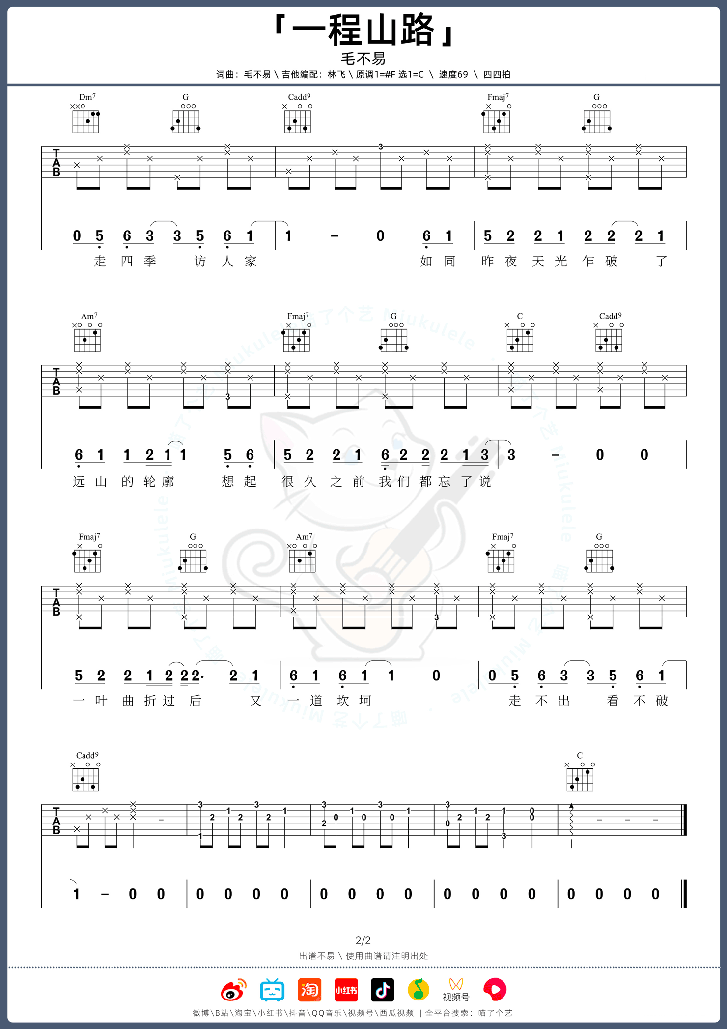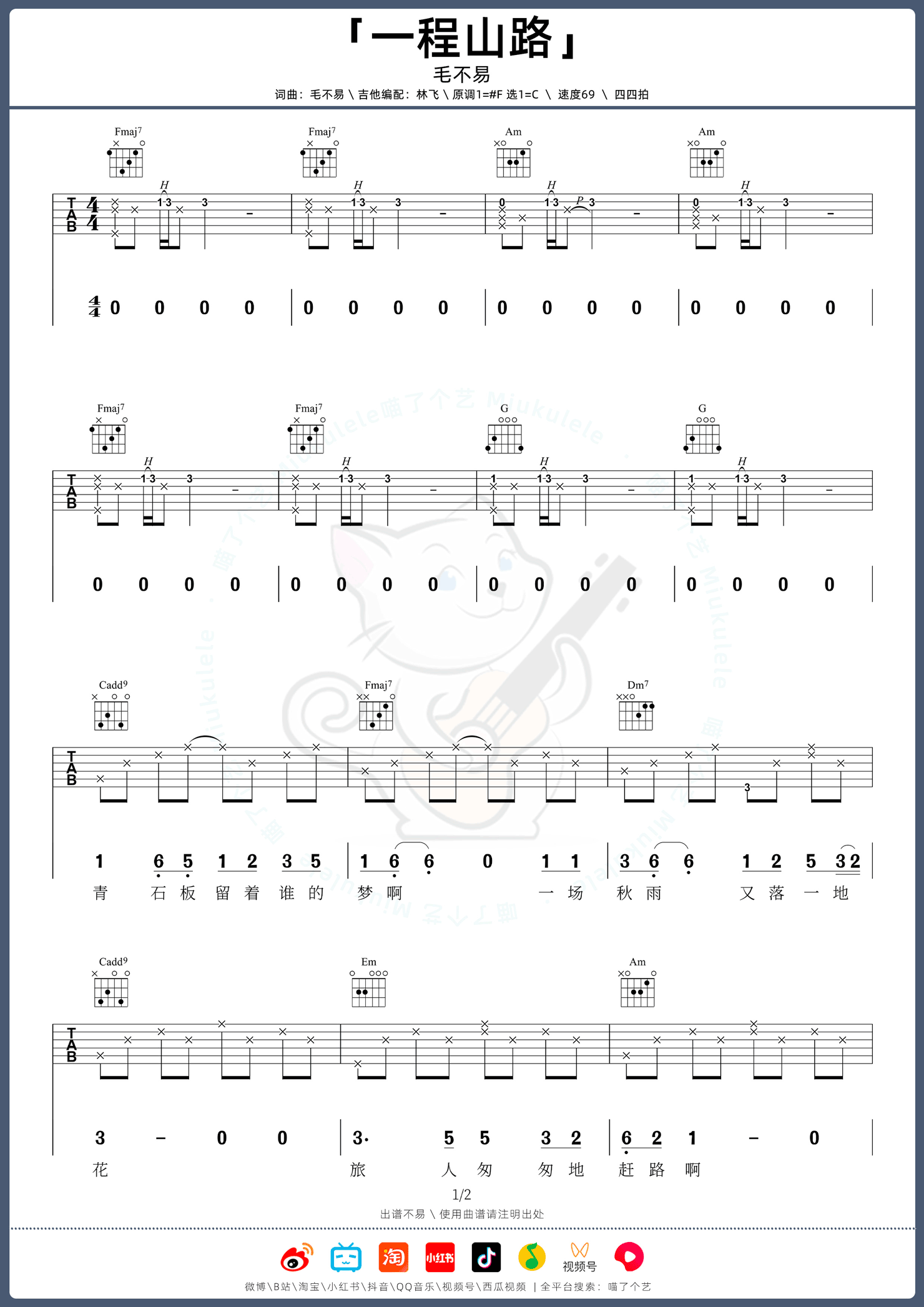 《毛不易《一程山路吉他谱》(G调)》内容来自于互联网,不能保证内容的准确性与完整性,仅供学习交流欣赏,请勿用于其它用途,内容版权归原作者及来源网站所有,如有侵犯到您的权益请来信告知,我们将及时删除。