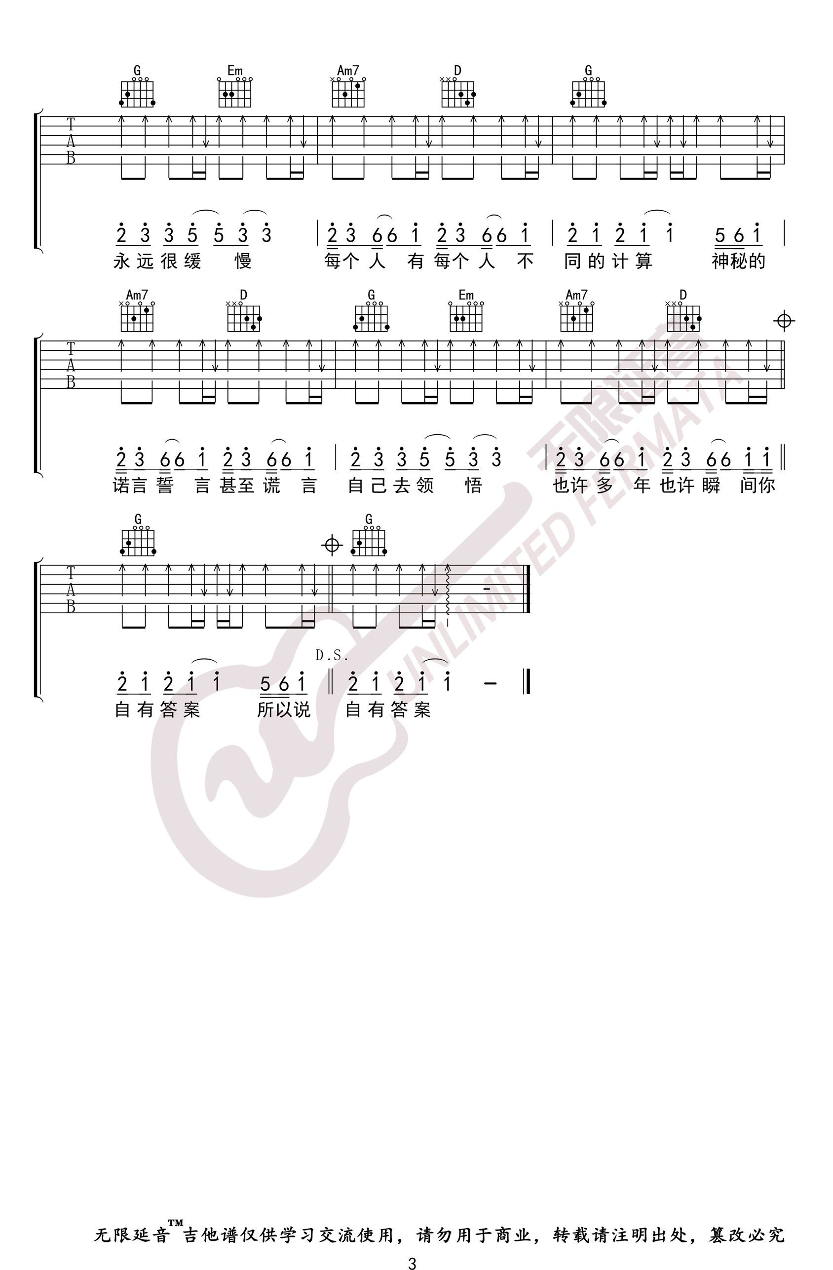 《杨坤/郭采洁《答案吉他谱》(G调)》内容来自于互联网,不能保证内容的准确性与完整性,仅供学习交流欣赏,请勿用于其它用途,内容版权归原作者及来源网站所有,如有侵犯到您的权益请来信告知,我们将及时删除。