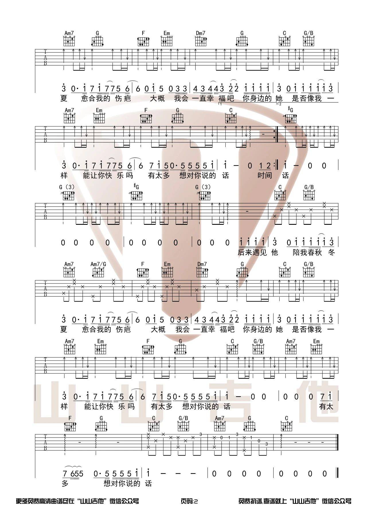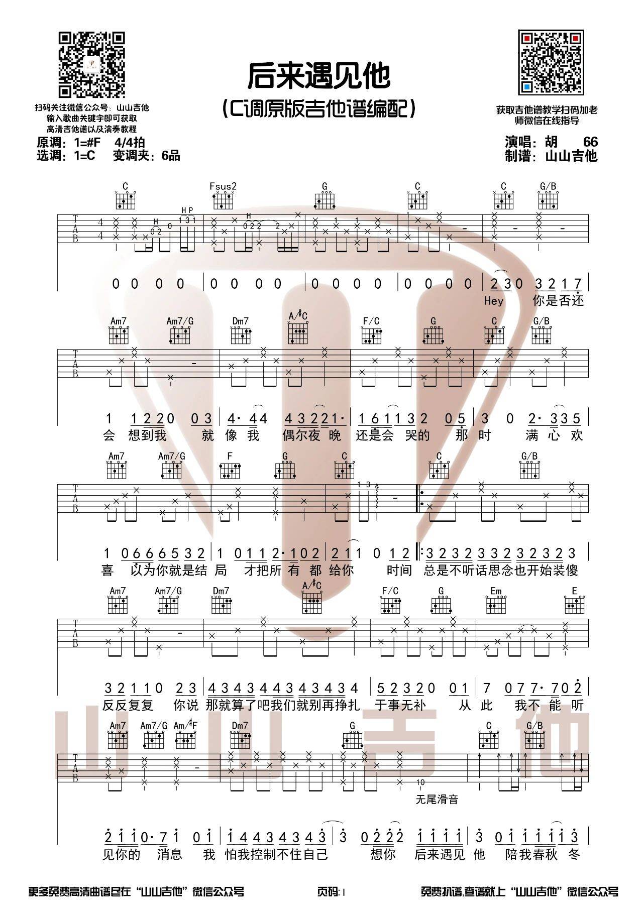 《胡66《后来遇见他吉他谱》(C调)》内容来自于互联网,不能保证内容的准确性与完整性,仅供学习交流欣赏,请勿用于其它用途,内容版权归原作者及来源网站所有,如有侵犯到您的权益请来信告知,我们将及时删除。