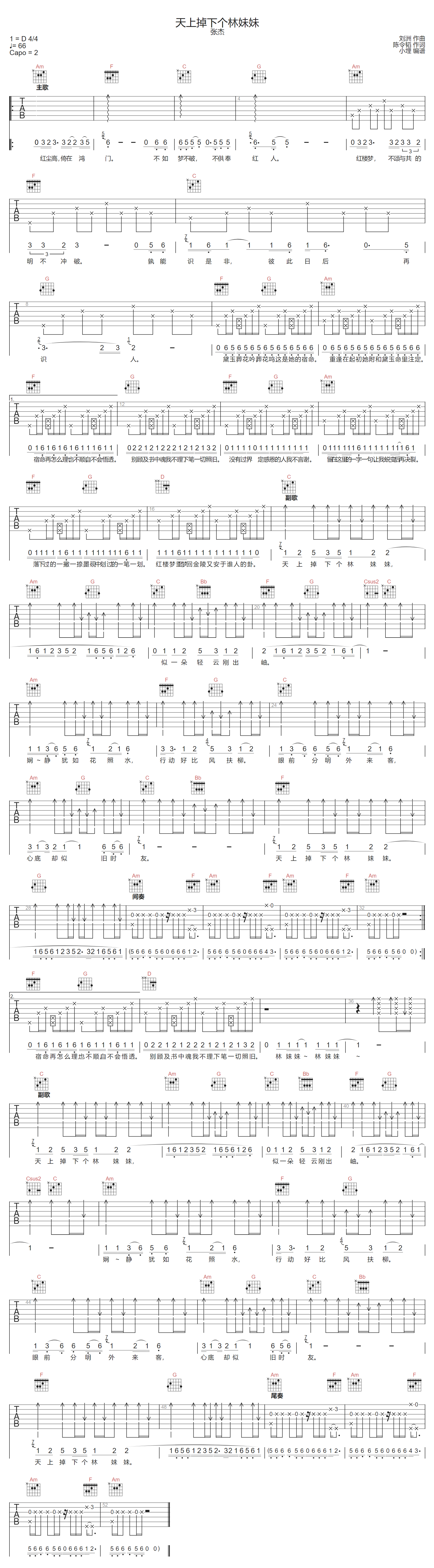 天上掉下个林妹妹张杰演唱C调,变调夹夹一品。电影的同名主题曲,三张高清图片谱。歌曲,从头到尾都是以扫弦为主,注意扫弦的层次感,喜欢的朋友可以试弹一下。