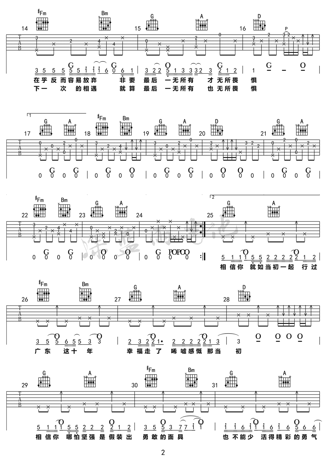 广东雨神《广东爱情故事吉他谱》(G调)