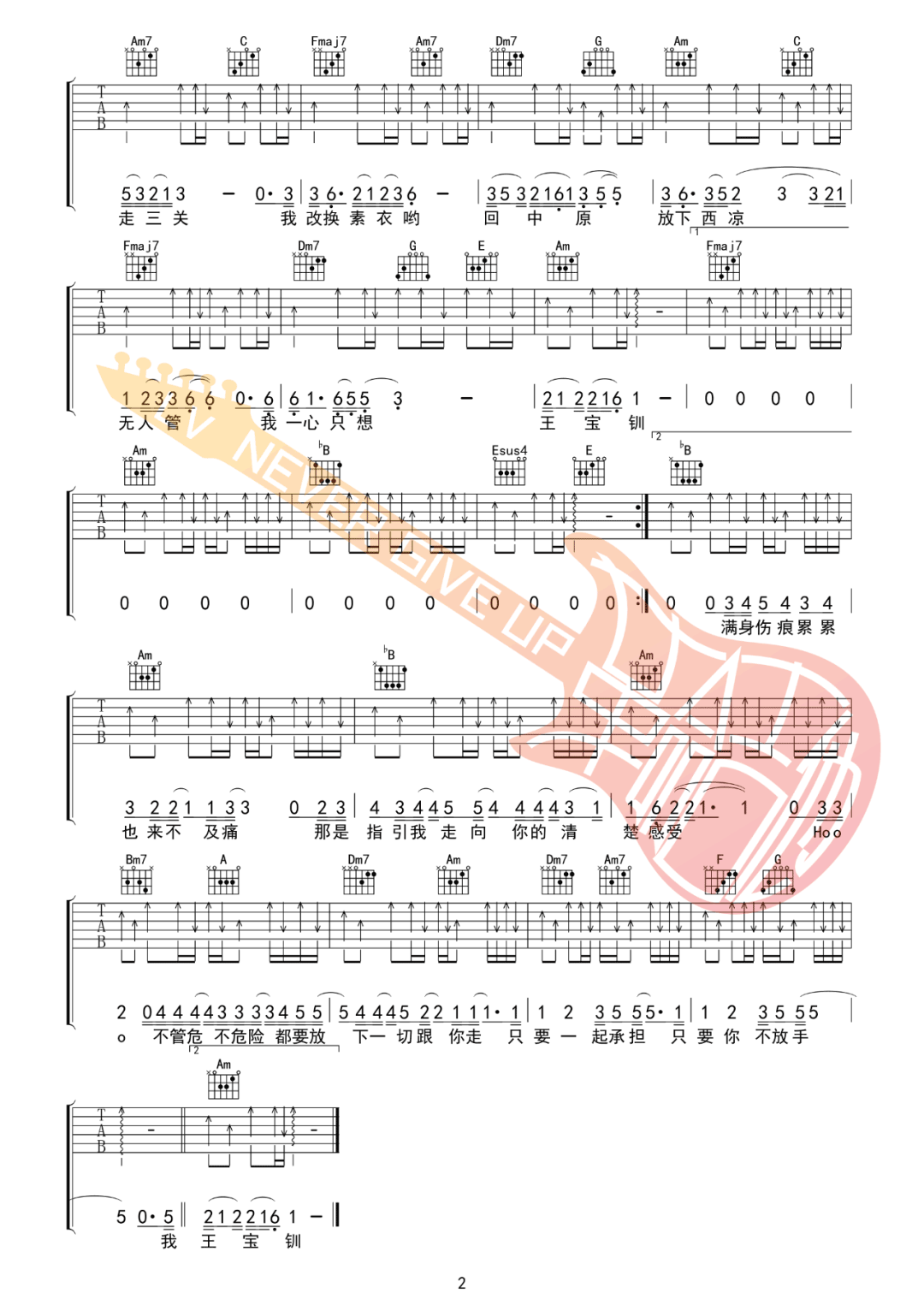 广东雨神《广东爱情故事吉他谱》(G调)