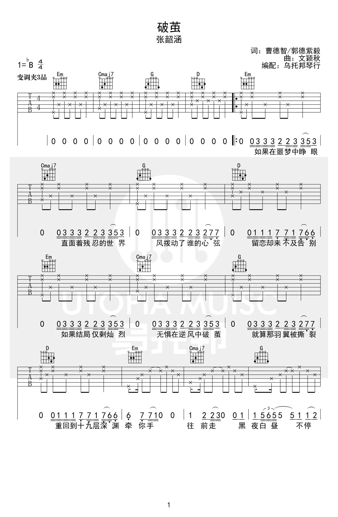 本文标题 《张韶涵《破茧吉他谱》(C调)》,网址:https://www.21qupu.com/guitar/62673.html