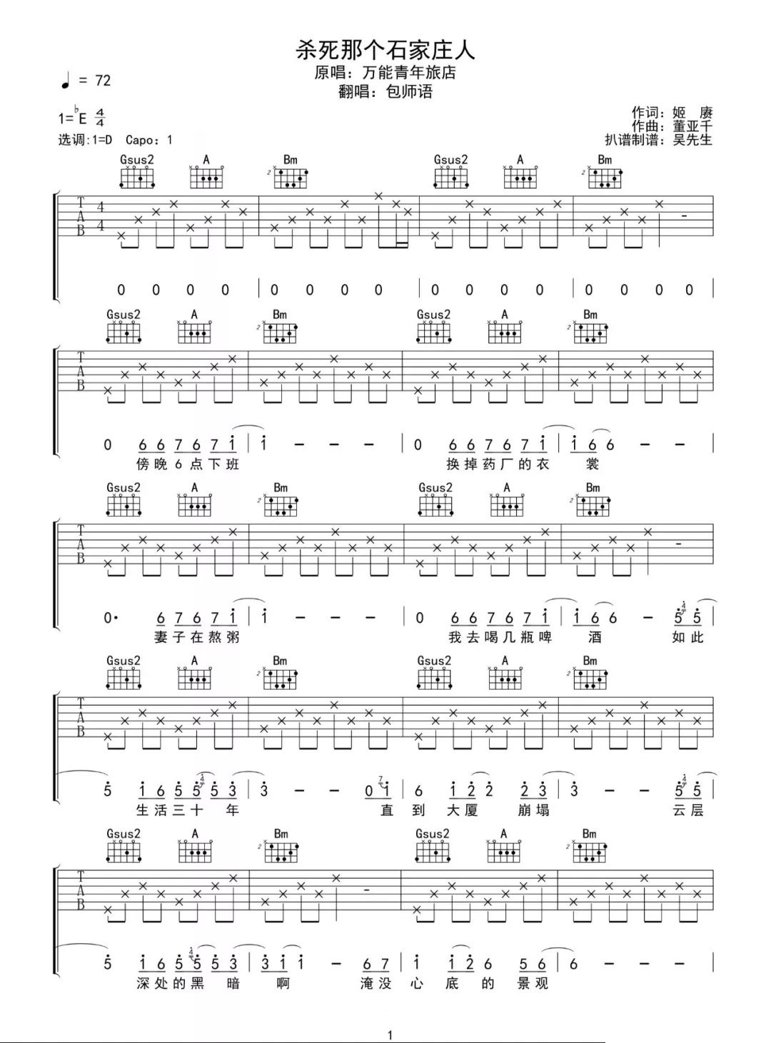 《包师语《杀死那个石家庄人吉他谱》(G调)》内容来自于互联网,不能保证内容的准确性与完整性,仅供学习交流欣赏,请勿用于其它用途,内容版权归原作者及来源网站所有,如有侵犯到您的权益请来信告知,我们将及时删除。