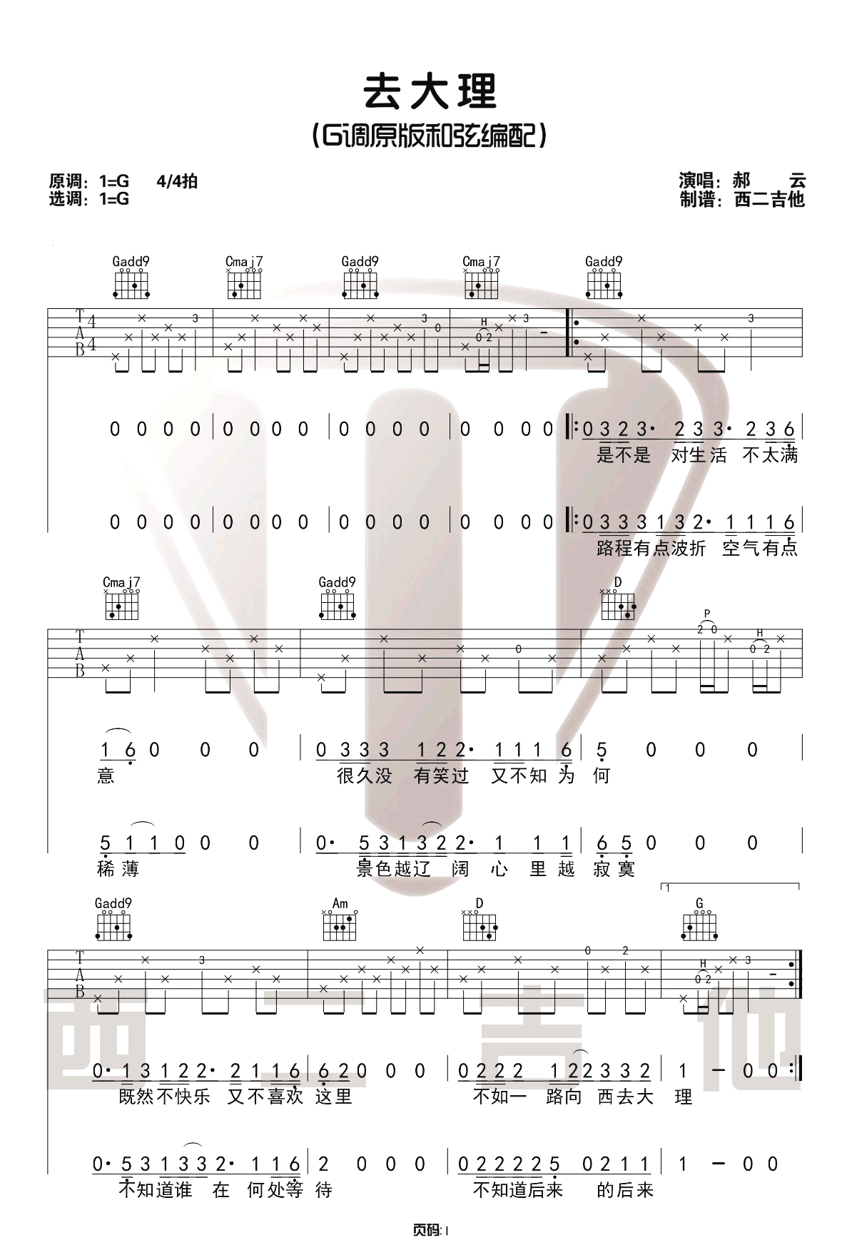 《郝云《去大理吉他谱》(G调)》内容来自于互联网,不能保证内容的准确性与完整性,仅供学习交流欣赏,请勿用于其它用途,内容版权归原作者及来源网站所有,如有侵犯到您的权益请来信告知,我们将及时删除。