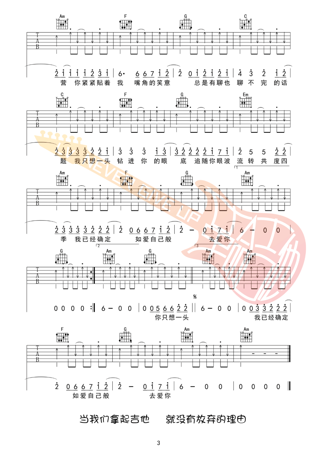 《许嵩《合拍吉他谱》(G调)》内容来自于互联网,不能保证内容的准确性与完整性,仅供学习交流欣赏,请勿用于其它用途,内容版权归原作者及来源网站所有,如有侵犯到您的权益请来信告知,我们将及时删除。