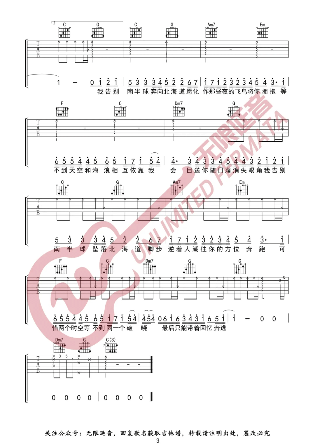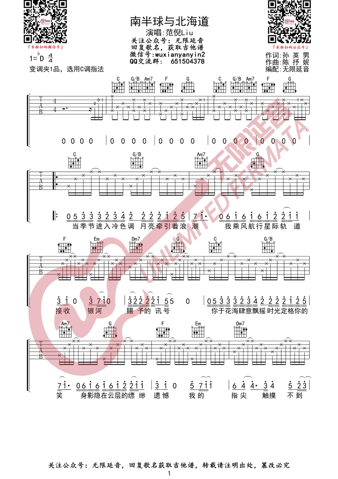 《范倪Liu《南半球与北海道吉他谱》(C调)》内容来自于互联网,不能保证内容的准确性与完整性,仅供学习交流欣赏,请勿用于其它用途,内容版权归原作者及来源网站所有,如有侵犯到您的权益请来信告知,我们将及时删除。