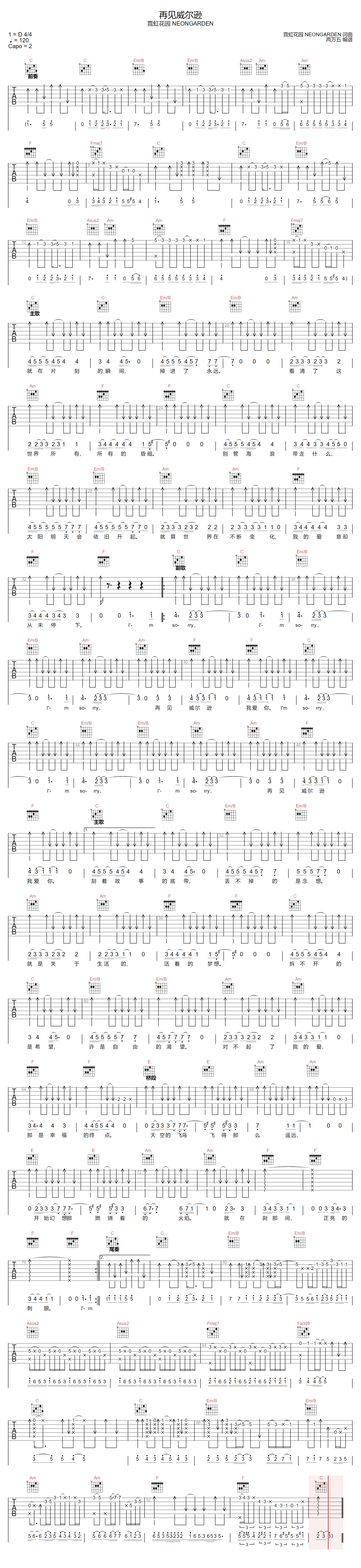 《霓虹花园《再见威尔逊吉他谱》(C调)》内容来自于互联网,不能保证内容的准确性与完整性,仅供学习交流欣赏,请勿用于其它用途,内容版权归原作者及来源网站所有,如有侵犯到您的权益请来信告知,我们将及时删除。