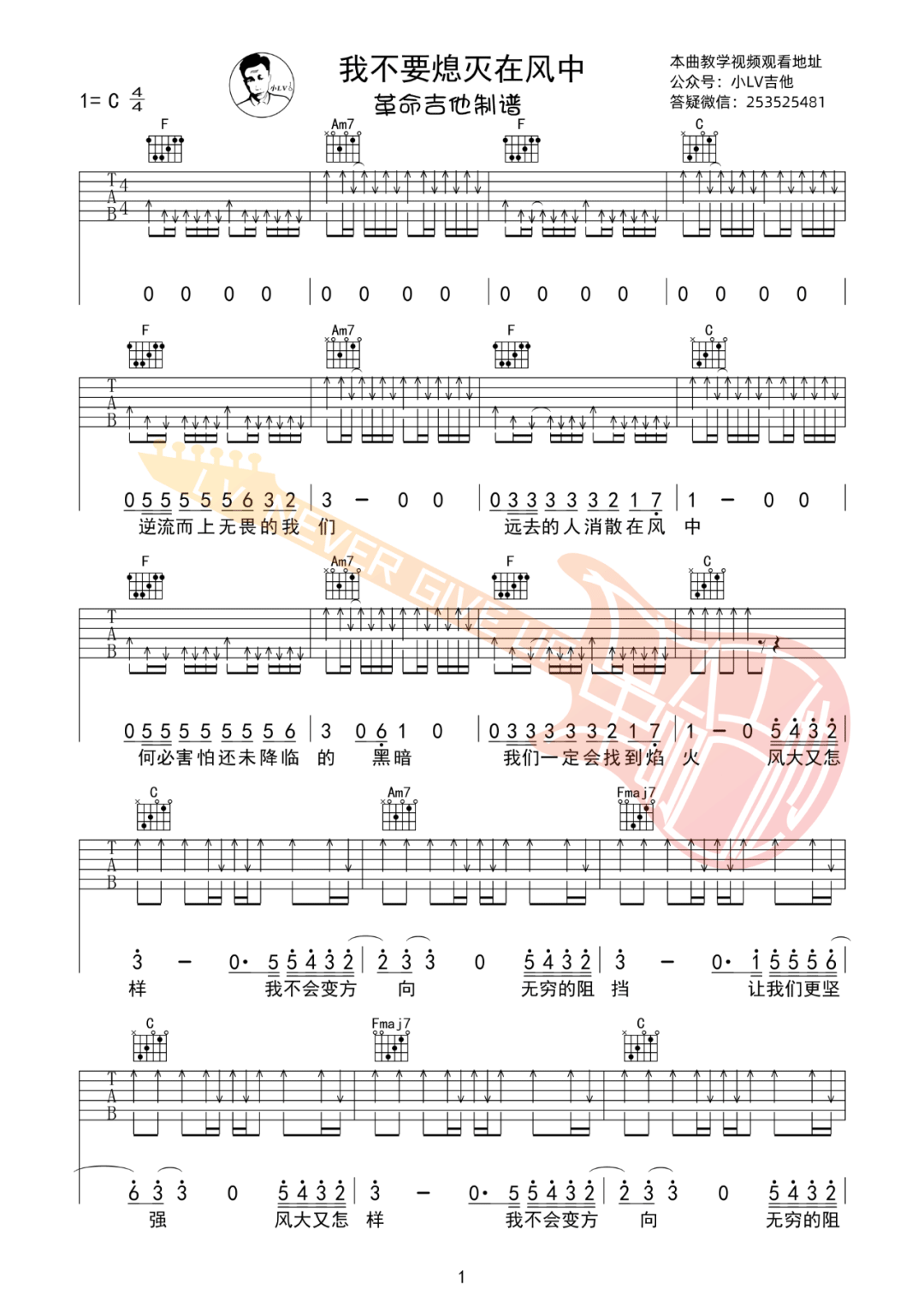 《新裤子乐队《我不要熄灭在风中吉他谱》(C调)》内容来自于互联网,不能保证内容的准确性与完整性,仅供学习交流欣赏,请勿用于其它用途,内容版权归原作者及来源网站所有,如有侵犯到您的权益请来信告知,我们将及时删除。