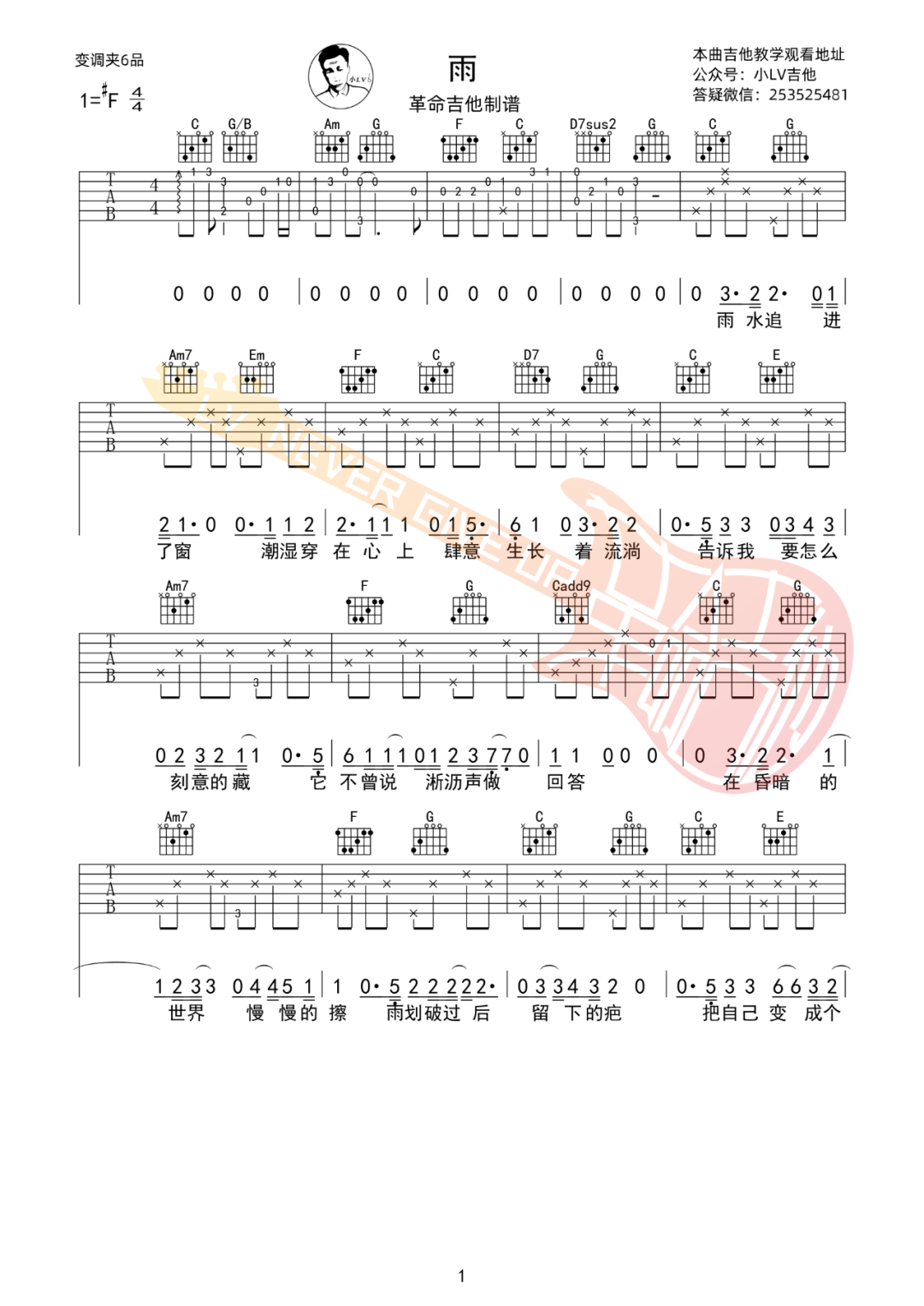 《沈以诚《雨吉他谱》(G调)》内容来自于互联网,不能保证内容的准确性与完整性,仅供学习交流欣赏,请勿用于其它用途,内容版权归原作者及来源网站所有,如有侵犯到您的权益请来信告知,我们将及时删除。