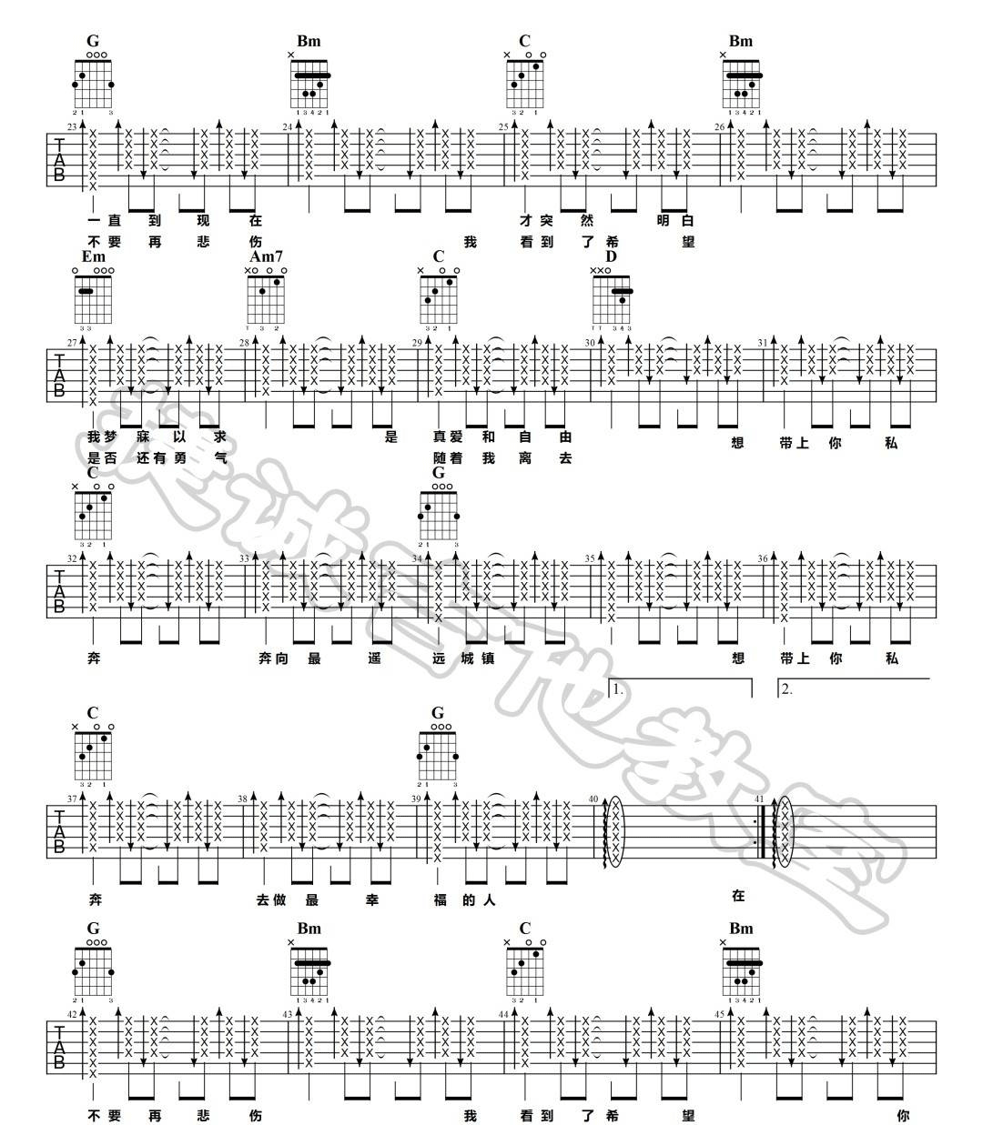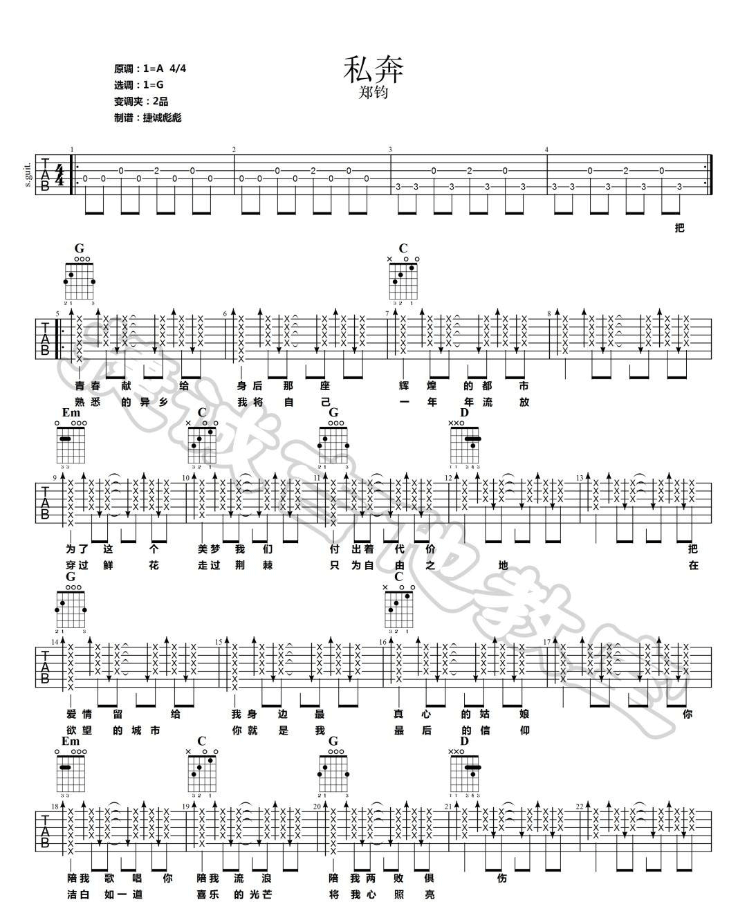《郑钧《私奔吉他谱》(C调)》内容来自于互联网,不能保证内容的准确性与完整性,仅供学习交流欣赏,请勿用于其它用途,内容版权归原作者及来源网站所有,如有侵犯到您的权益请来信告知,我们将及时删除。